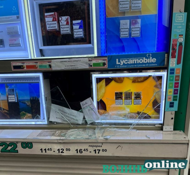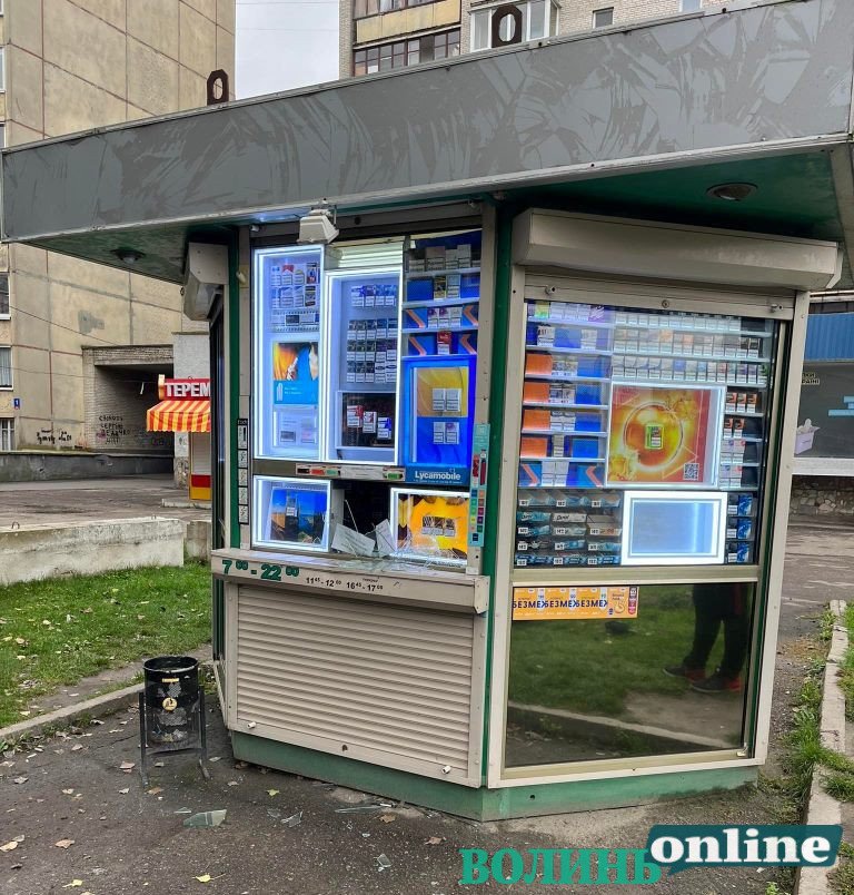 Хотів сигарет під час повітряної тривоги: у Луцьку чоловік розбив кіоск. Фото