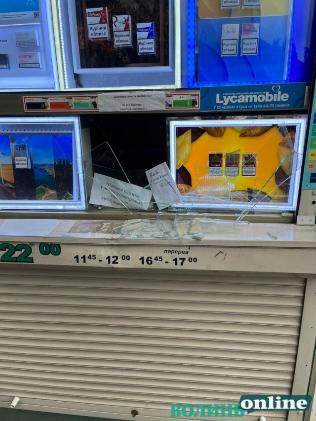 Під час повітряної тривоги кіоск був зачинений, то ж чоловік, бажаючи придбати сигарет, розбив вітрину кіоску. Порушника, який поводився неадекватно, затримали правоохоронці, поклавши на бетон, пише Волинь Online.