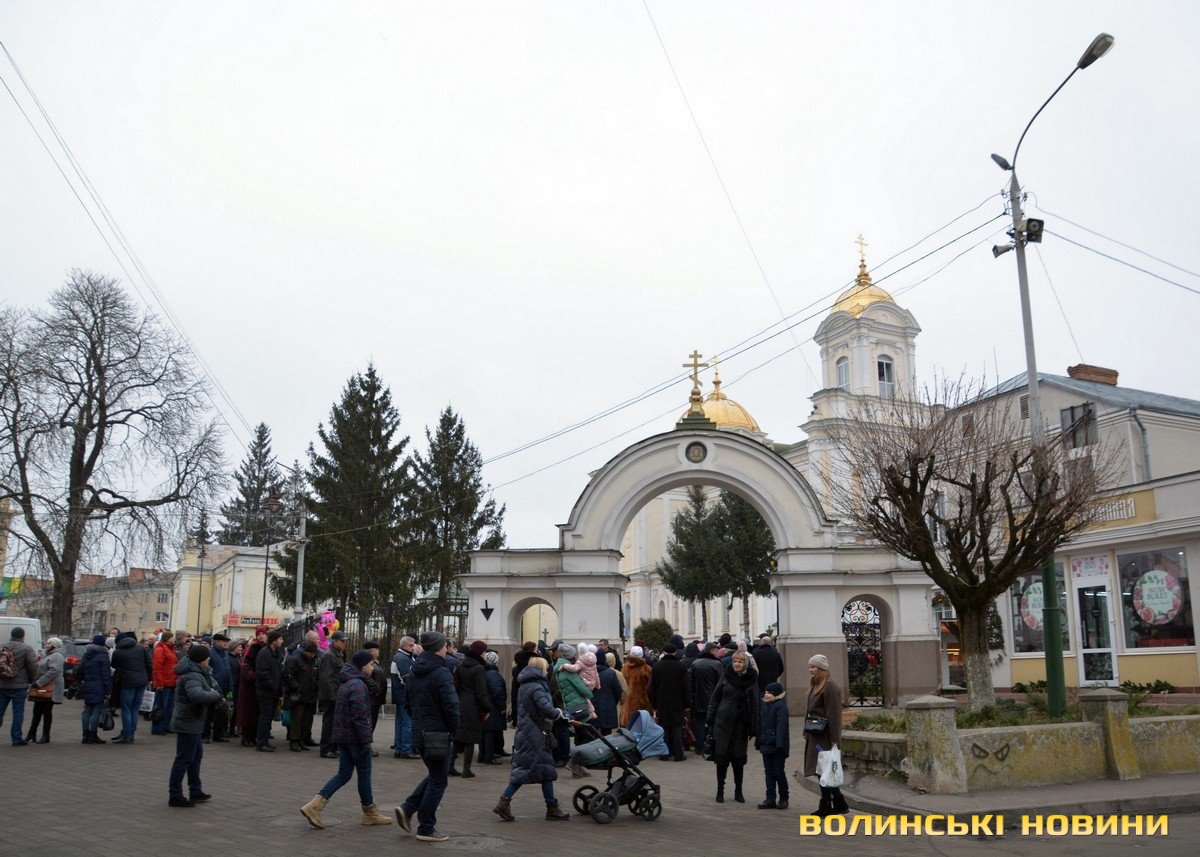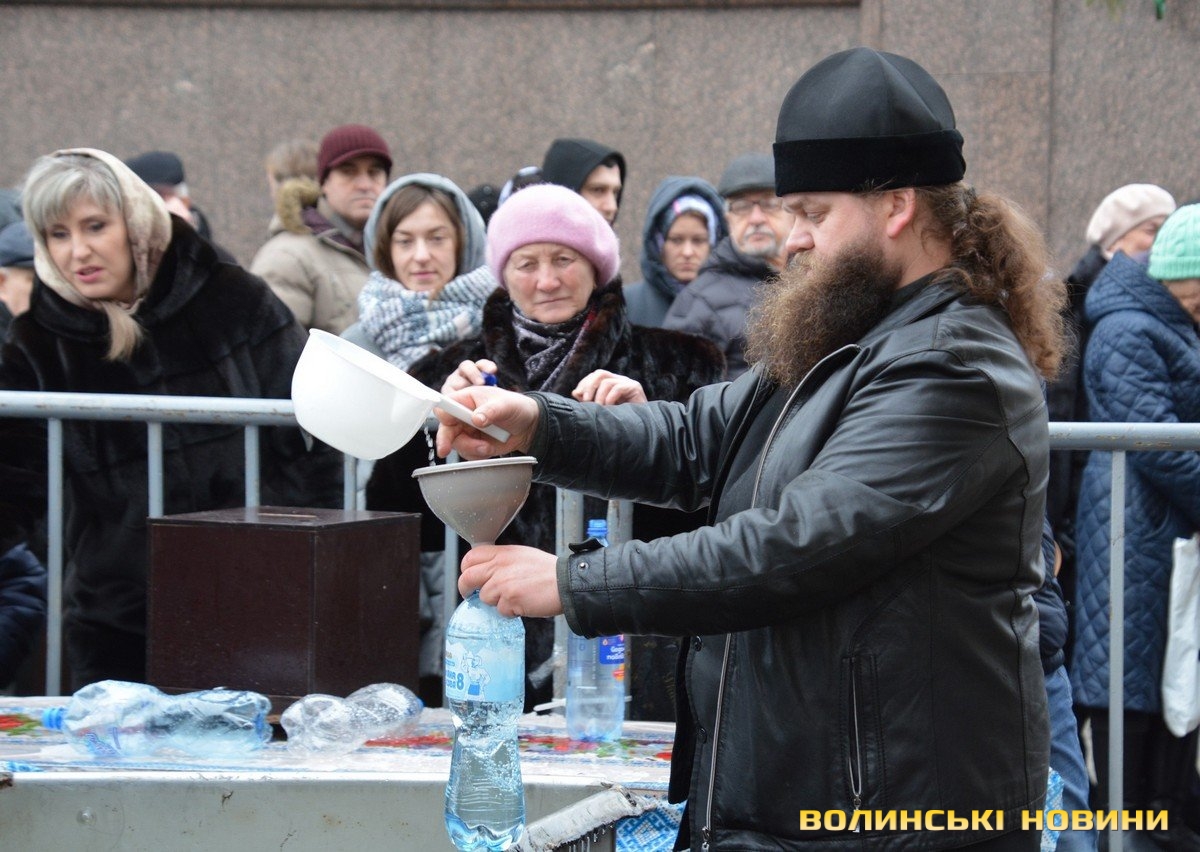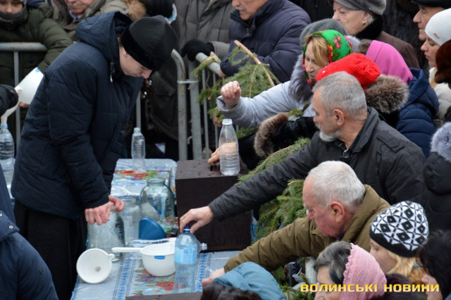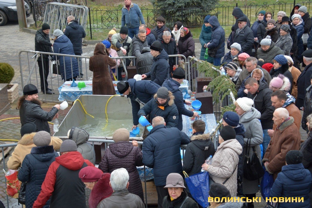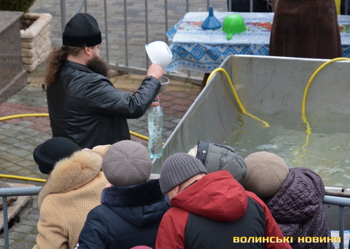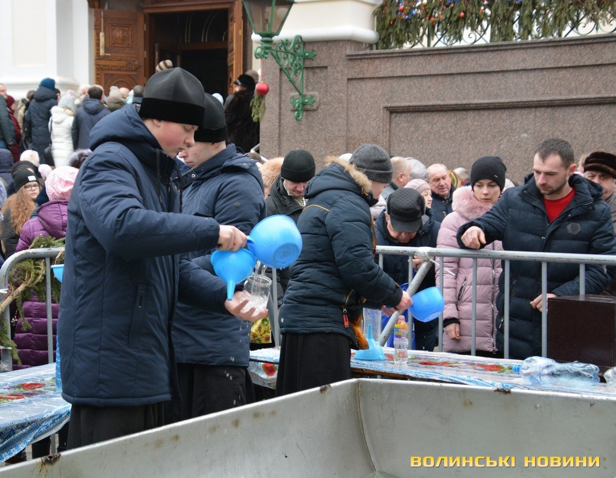 Однак, традиційно, найбільше людей приходить до церков саме зранку 19 січня. Сотні вірян зібралися на соборному майдані та у храмі, аби спільно пригадати євангельську історію хрещення Ісуса та набрати свяченої води. Для цього люди принесли із собою різноманітні ємності: від звичайних до оздоблених пляшечок та банок.Після завершення святкової літургії, Митрополит Луцький і Волинський Михаїл звернувся до громади. Зокрема, окрім привітань та побажань, владика Михаїл підкреслив: «Щоб ми сьогодні, вшановуючи це свято, просто усвідомлювали не як фактор – нам треба набрати води і на цьому моя релігійність закінчилася. Потрібна до цього молитва – жива розмова з Богом. До цього потрібна дія, яку ти проводиш. І далі потрібне праведне життя. Ти тепер стаєш святим. Очистив себе водою: напився чи ти помився – немає різниці. Ти тепер – святий. А якщо ти став святим – то і живи, як святий».