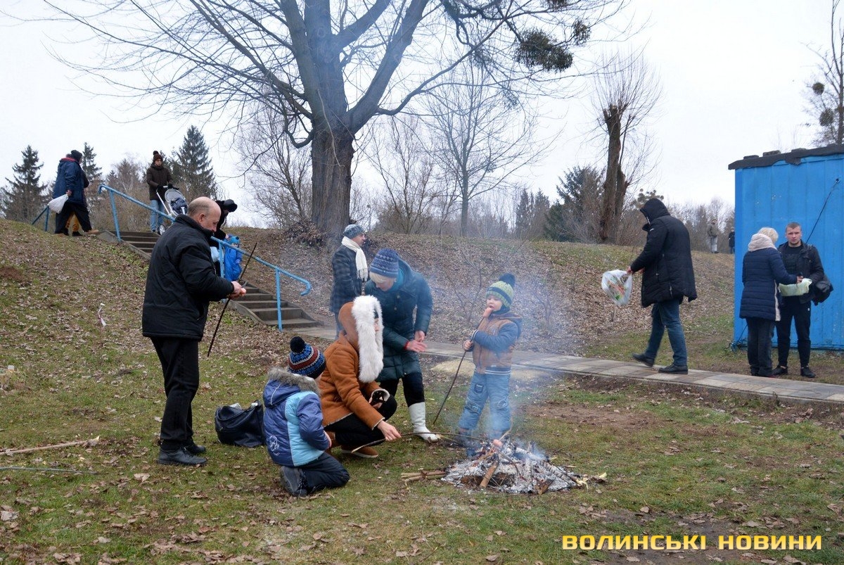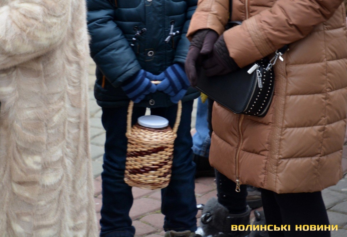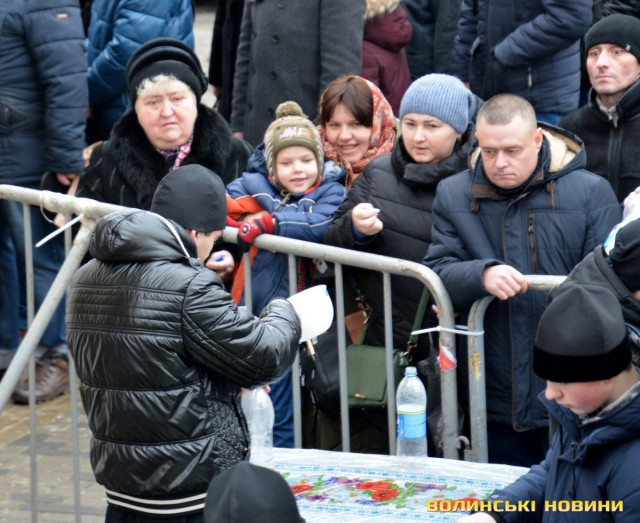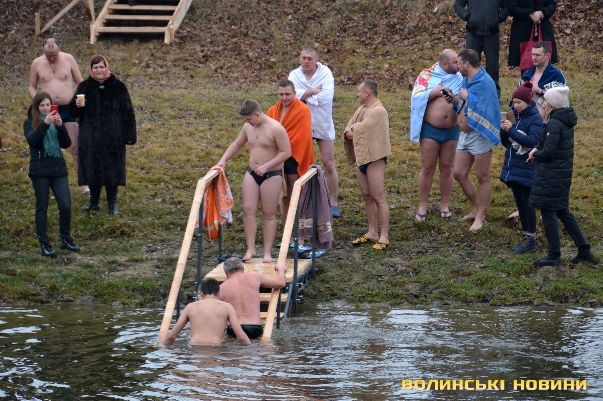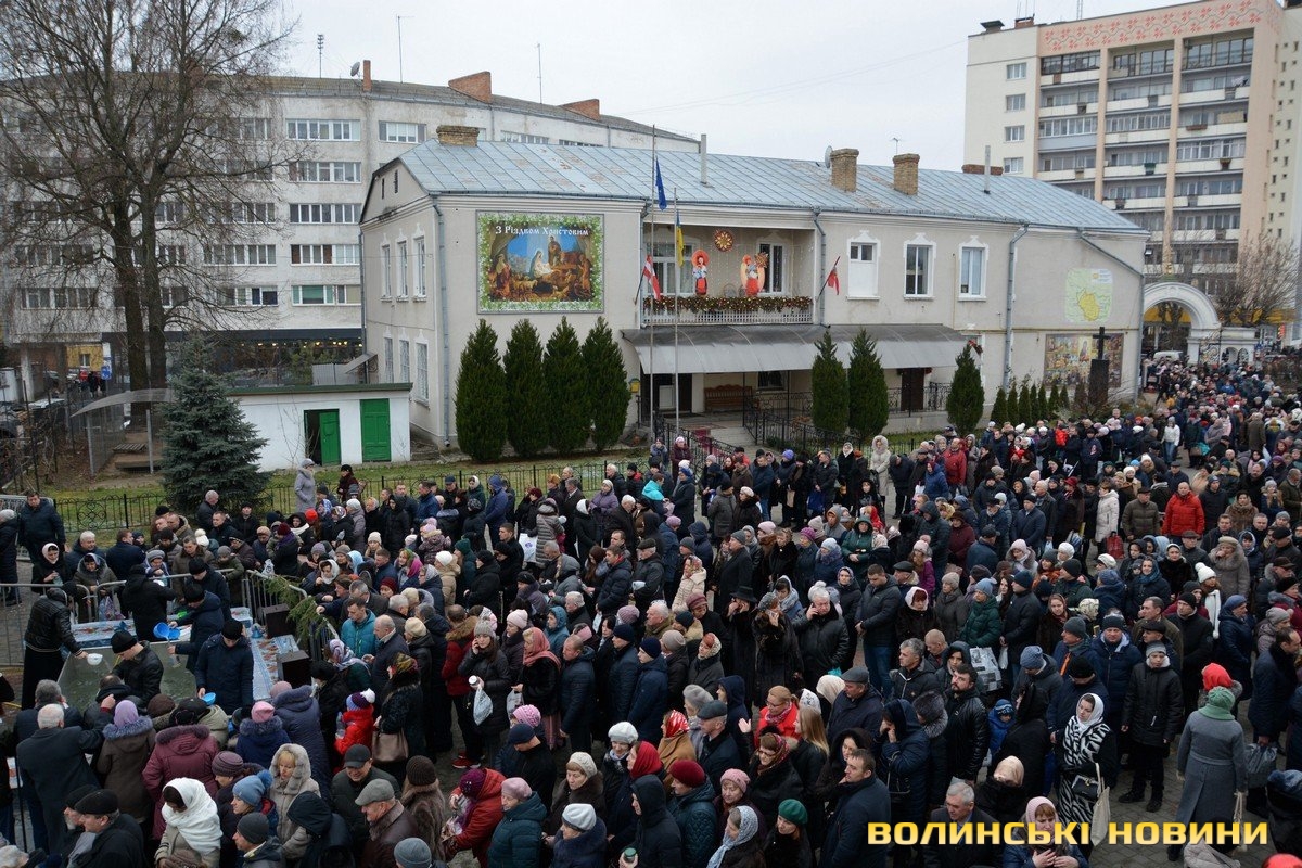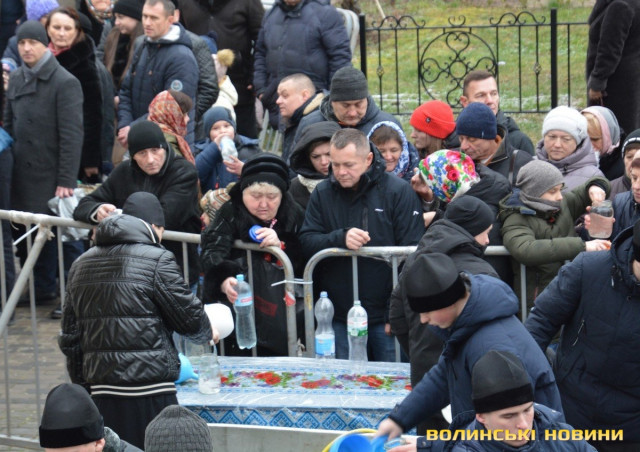 Однак, традиційно, найбільше людей приходить до церков саме зранку 19 січня. Сотні вірян зібралися на соборному майдані та у храмі, аби спільно пригадати євангельську історію хрещення Ісуса та набрати свяченої води. Для цього люди принесли із собою різноманітні ємності: від звичайних до оздоблених пляшечок та банок.Після завершення святкової літургії, Митрополит Луцький і Волинський Михаїл звернувся до громади. Зокрема, окрім привітань та побажань, владика Михаїл підкреслив: «Щоб ми сьогодні, вшановуючи це свято, просто усвідомлювали не як фактор – нам треба набрати води і на цьому моя релігійність закінчилася. Потрібна до цього молитва – жива розмова з Богом. До цього потрібна дія, яку ти проводиш. І далі потрібне праведне життя. Ти тепер стаєш святим. Очистив себе водою: напився чи ти помився – немає різниці. Ти тепер – святий. А якщо ти став святим – то і живи, як святий».