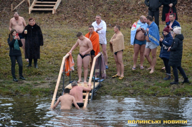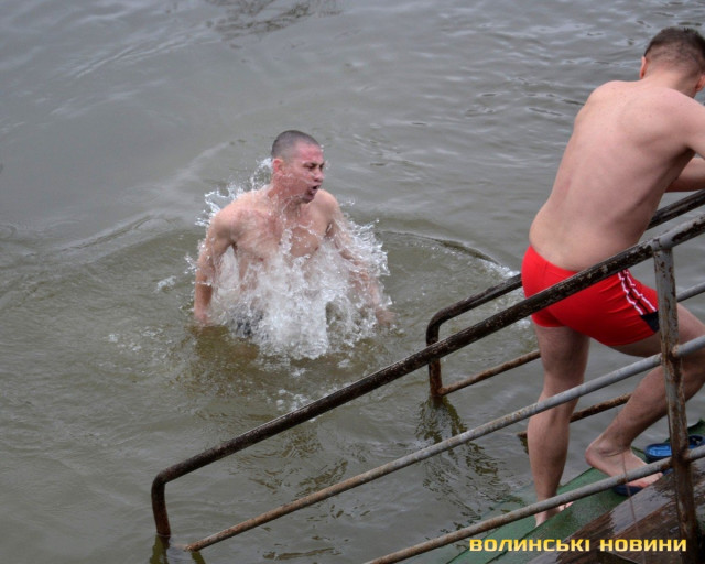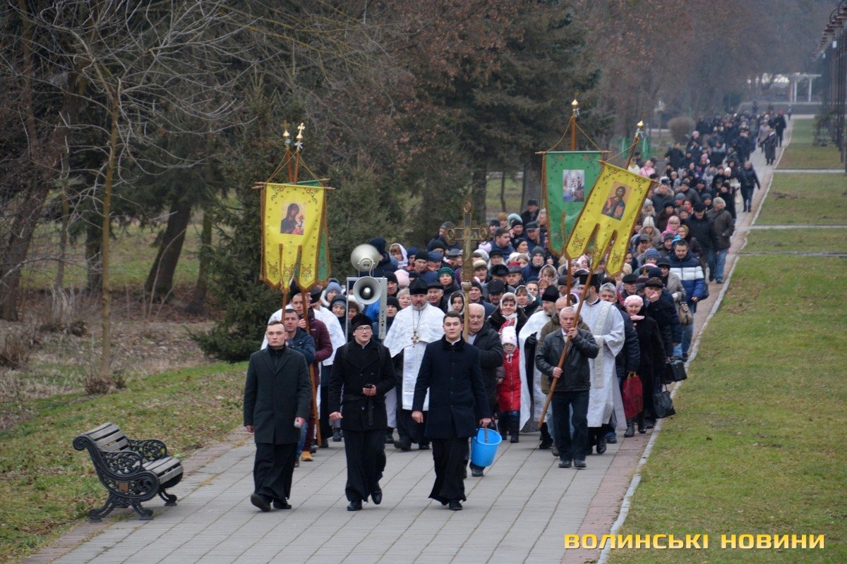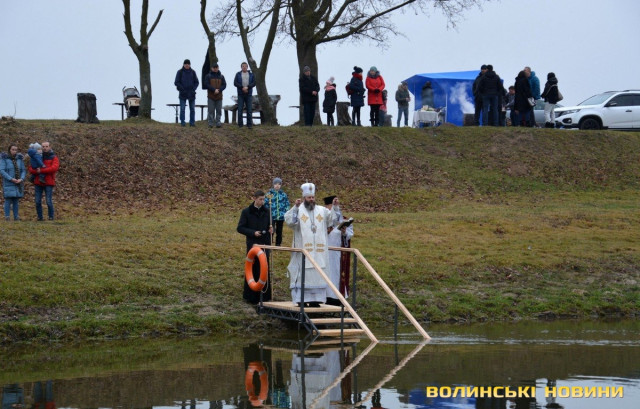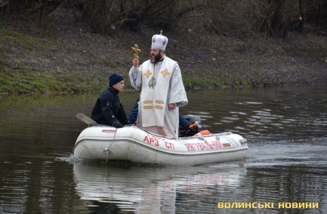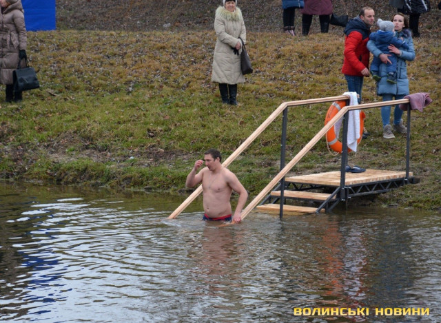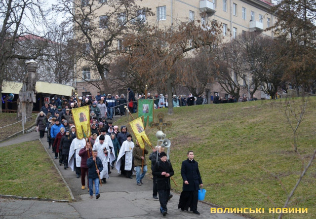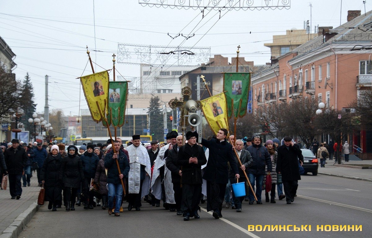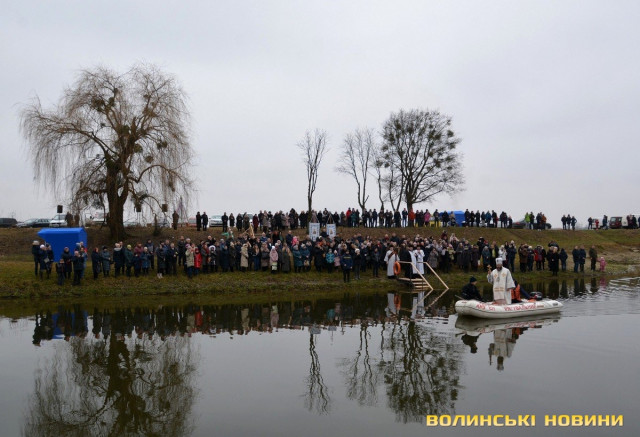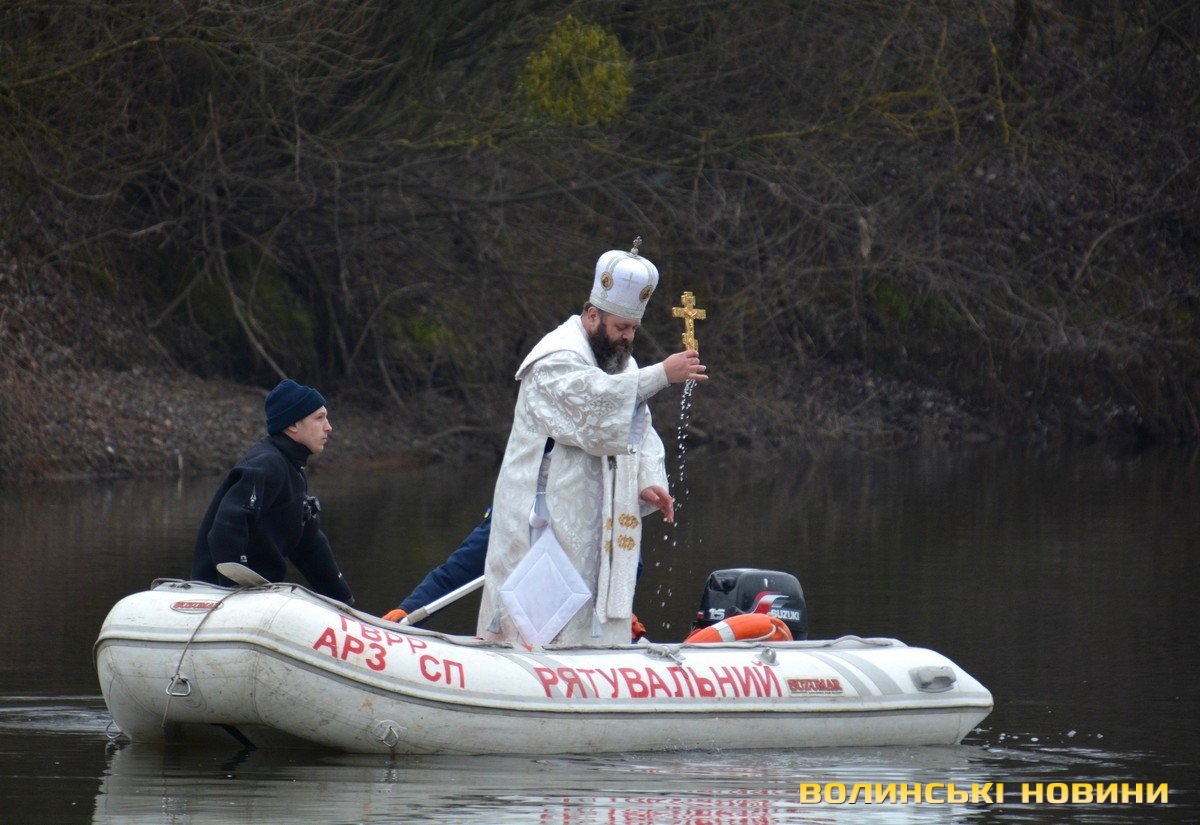 Духовенство та віряни сформували традиційний хресний хід, який рушив до пляжу Центрального парку імені Лесі Українки. Відзначимо, що цьогоріч такі урочисті процесії прийшли до берегів головної річки нашого міста і від інших храмів.Велике освячення здійснювалося цього року трохи незвично. Владика Михаїл підійшов до берега зі сторони села Рованці. Звідти він виплив човном на середину Стиру, де тричі занурив хреста у його води.Але від ще однієї традиції свято не обійшлося. Обряд проходив під гарматний салют. Так привітали усіх з Водохрещем вояки Козацького стрілецького братства.Після благословіння на купіль, яке супроводжувалося щедрим окропленням водою, усі бажаючі могли зануритися у воду, аби ще й таким чином долучитися до свята. Владика Михаїл, у свою чергу, пожартував, що через годину свяченою стане і звичайна вода з під крану, адже зараз він вирушає на КП «Луцькводоканал».