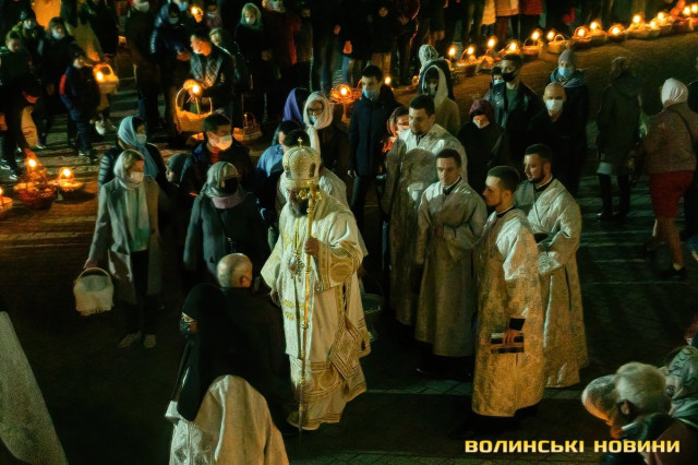 Великодня ніч цього року яскраво вирізнялася від минулорічної. Насамперед, золотими річками з вогників свічок.