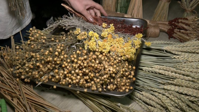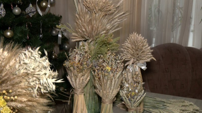 Майстриня з села Прилуцьке Тетяна Петлюк 15 років плете дідухи. Для їхнього оформлення використовує декоративні квіти, трави та злаки з власного городу.