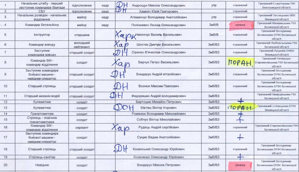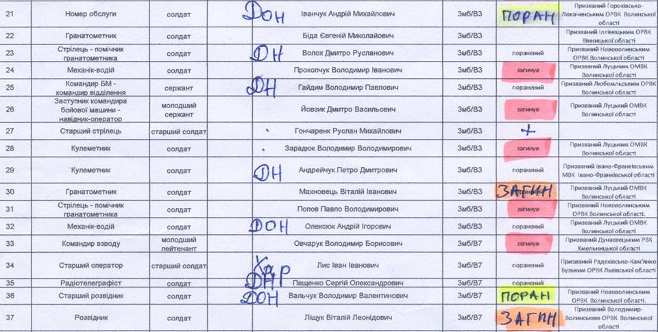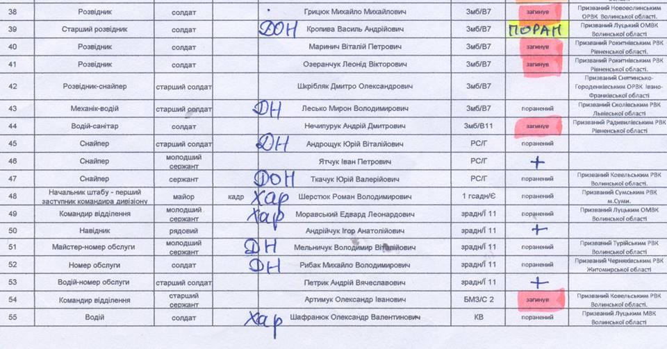 Потім приготування списків поранених, загиблих, вцілілих. Погодинно корекутвали їх. Із поранених прізвища переносили у графу з загиблими.