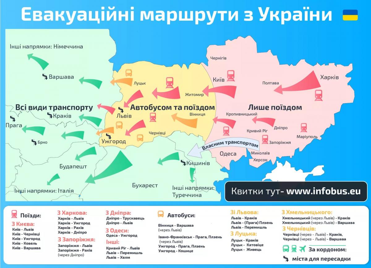 Сайт infobus.eu надав детальну карту, на якій вказані можливі рятівні маршрути: