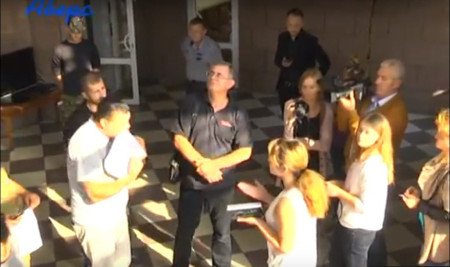 А зрештою прихильників та помічники нардепів Ігоря Лапіна та Степана Івахіва самі з’явилась біля приміщення телеканалу Аверс. Так, ватага чоловіків у супроводі журналістів видань, підконтрольних Ігорю Лапіну та Степану Івахіву, прийшли сьогодні до журналістів Аверсу.