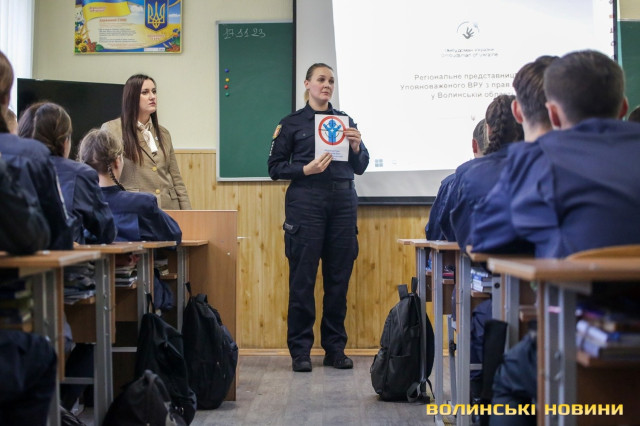Напередодні відзначення Всесвітнього дня дитини луцьким десятикласникам, які поглиблено вивчають право, розповіли про права дитини та хто такий Омбудсман.Патрульна Ольга Шмігель поставила школярам низку питань не лише про те, які права мають діти, а й про їхні обов’язки. Вона відзначила, що права у людини з’являються з моменту народження, а з настанням повноліття прав у людини стає все більше. Урок відбувався у форматі діалогу, учні проявили хороше знання свого профільного предмету.Натомість Представниця Уповноваженого Верховної Ради України з прав людини у Волинській області Юлія Спас детальніше розповіла про незалежну інституцію, яка допомагає відновлювати порушені права людини.
