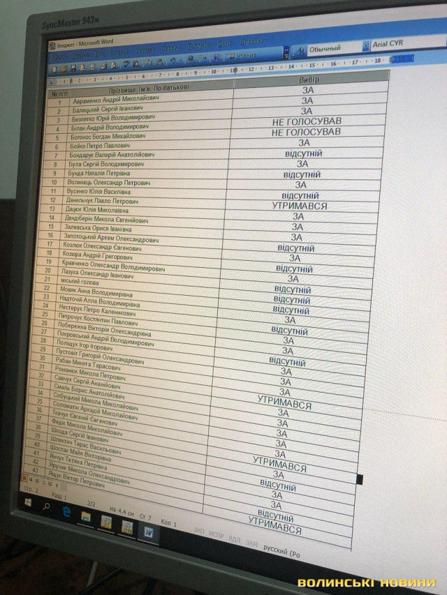 Хто з депутатів Луцькради не проголосував за бюджет міста 2019 року