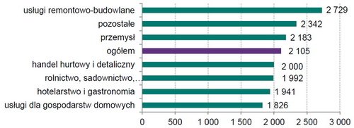 Найбільший рівень оплати праці – у будівництві (2729 злотих на місяць). Найменший – у домогосподарствах (1826 злотих). Натомість у домогосподарствах та у сфері послуг працюють найдовше. Українці, що задіяні у цих секторах, у середньому працюють 58 годин на тиждень, тоді як загалом цей показник дорівнює 54 години на тиждень.