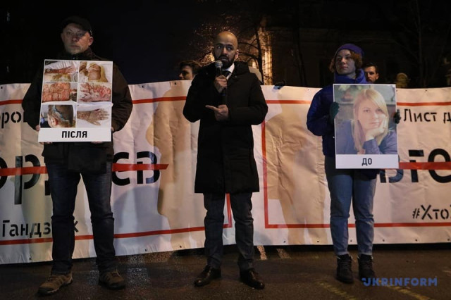 «На сьогодні вже пройшло 6 місяців з моменту нападу і 3 місяці з моменту смерті Катерини Гандзюк й досі правоохоронними органами не названо імен замовників цього вбивства», - підкреслив один з учасників акції, громадський активіст Богдан Чумак.