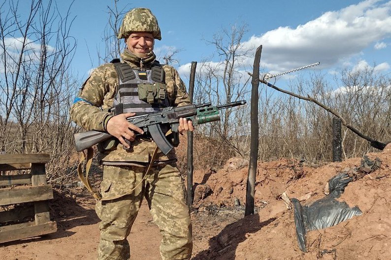 Віталію – 47 років. За освітою чоловік – вчитель початкових класів. До повномасштабної війни був професійним художником, розмальовував церкви на Волині, в інших регіонах України та у Польщі.У військкомат, каже чоловік, пішов у перші дні вторгнення Росії в Україну. «Усі хотіли швидше на фронт, зупиняти ворога. У мене дружина, троє дітей, я думаю, що вони поставилися правильно. Жінка, звісно, плакала, а я кажу: «Якщо не піду, буду ховатися, ти будеш мене потім поважати?!» – пригадує боєць.