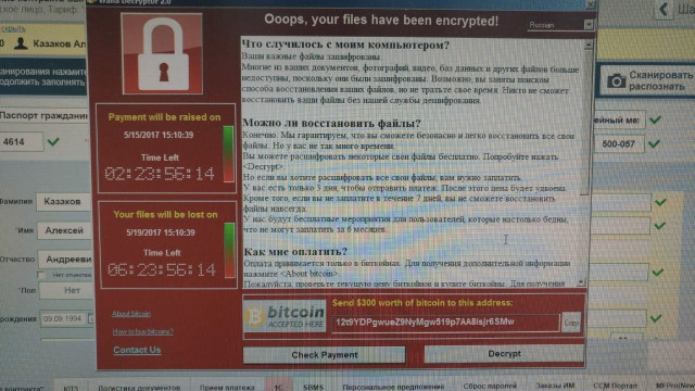 Вірус WannaCrypt або WCry блокує комп'ютер і просить викуп - 300 доларів в біткоіни. Судячи з фотографій, текст виводиться на мові країни, в якій діє програма. Уражені компанії поширили повідомлення, що вірус передається через електронну пошту і шифрує дані на комп'ютері, а також блокує екран.