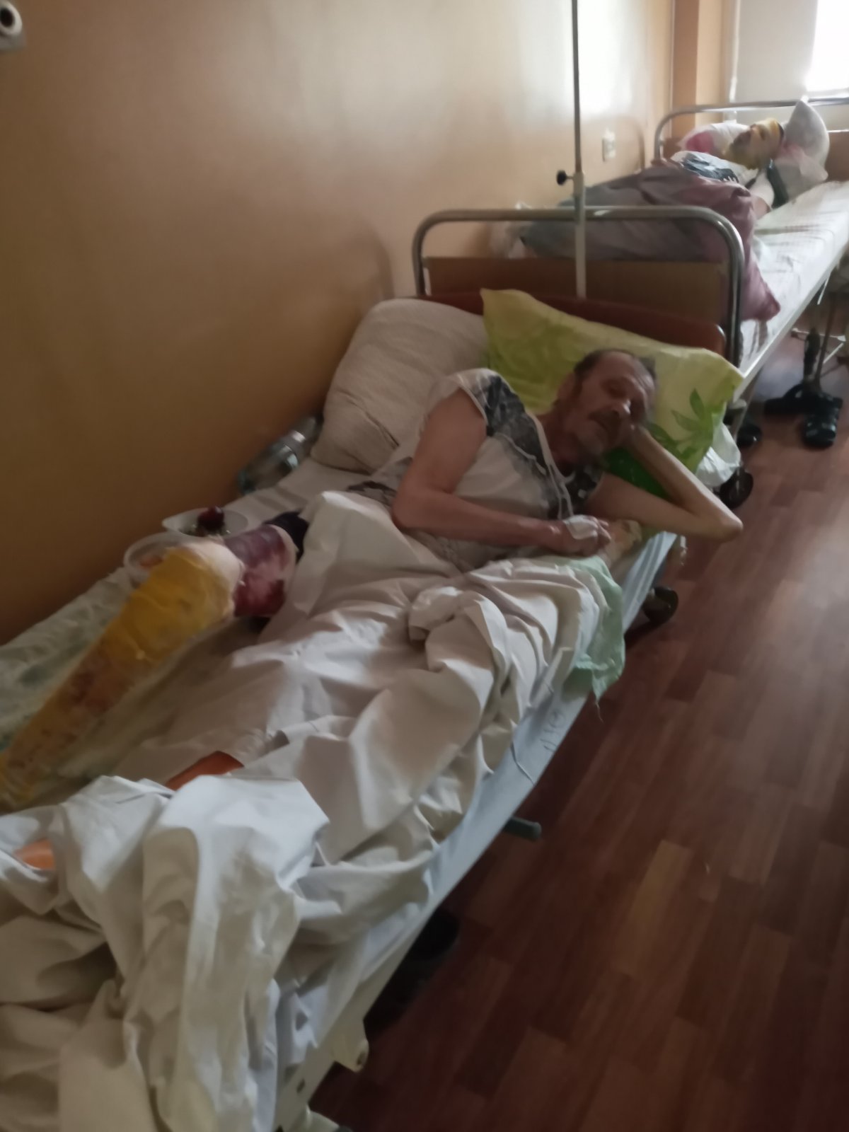 Скільки він часу пролежав сам на сам із бідою, нічого не ївши, – не пам’ятає. Днів зо п’ять. Зв’язку не було, людей поблизу також. Пересуватися не міг. Рвав простирадла й перемотував рани. Була на вулиці жахлива спека. Нарешті, одного з ранків, почув голоси. Це йшли наші солдати. Вони й врятували його. Винесли пішки розбитими дорогами до проїзної ділянки та відправили машиною у лікарню Слов’янська.Медики просто на вулиці з відер покупали пацієнта й почали оглядати. Почистили рани, зробили перев’язки. Але сказали, що доведеться ампутувати одну ногу, надто критична ситуація. Рідні, які на той час були вже там, забили на сполох й перевезли потерпілого у Дніпро в опікову лікарню. Там його виходжували майже два місяці: лікарі зробили диво, двічі прооперували пенсіонера, зберігши обидві нижні кінцівки.