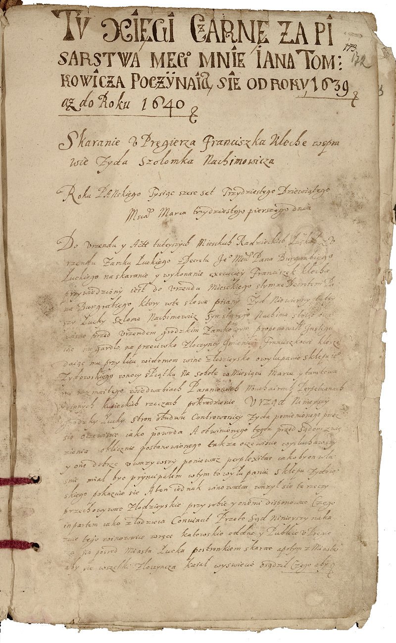 Аркуш із міської актової книги Луцька за 1638-1640 роки, яку писав Ян Томкович