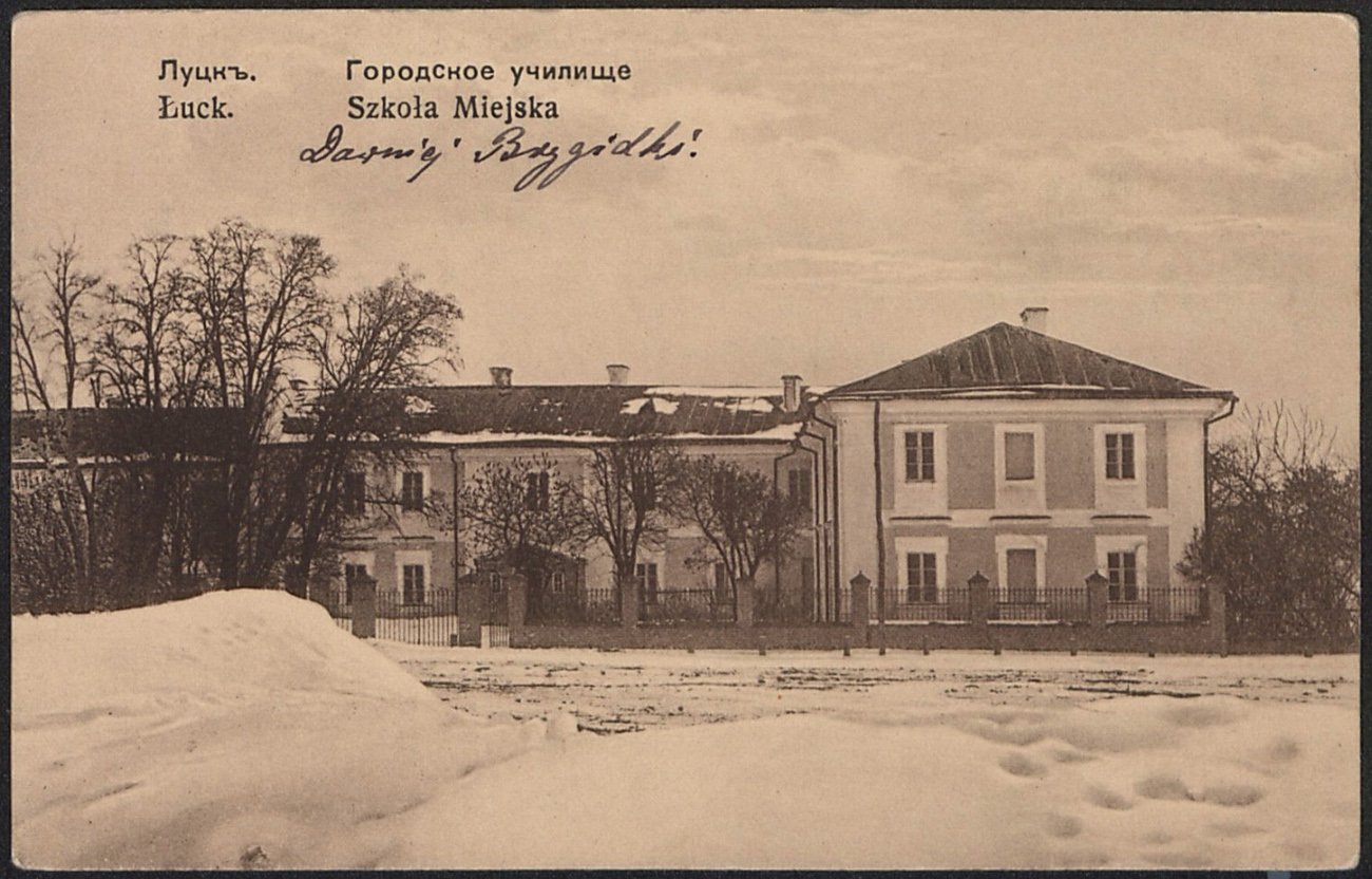 У 1917 році зусиллями організації Польської Шкільної Матері в Луцьку було утворено загальну школу імені королеви Ядвіги. Вона частково займала приміщення колишнього монастиря шариток. У 1921 році тут розміщувалася Торгова школа.Приміщення монастиря шариток на листівці початку ХХ століття