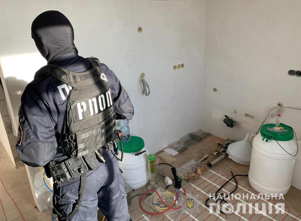 Під час обшуків виявили та вилучили майже 1 кг речовини, схожої на марихуану, більше 60 таблеток з вмістом наркотичних речовин, шприци з рідиною, схожою на наркотичну, предмет, схожий на гвинтівку, численні речі, ймовірно, здобуті незаконним шляхом, апарати для виготовлення спирту з метою його ймовірного незаконного збуту тощо.