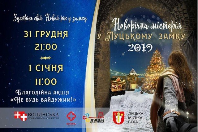 З 21 години 31 грудня 2018 року до вечора 01 січня 2019 року лучани матимуть змогу відвідавти фестиваль «Новорічна містерія у Луцькому замку 2019».