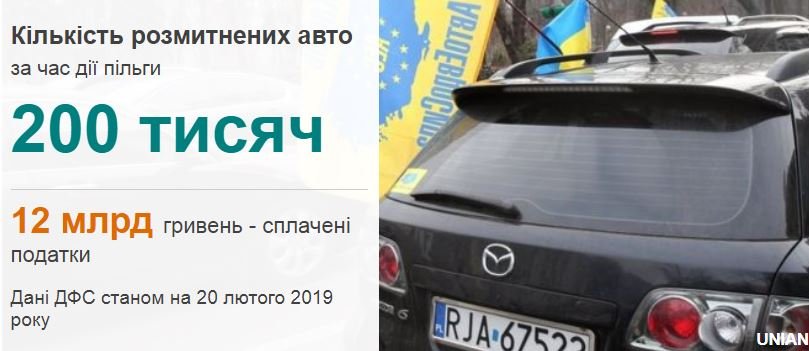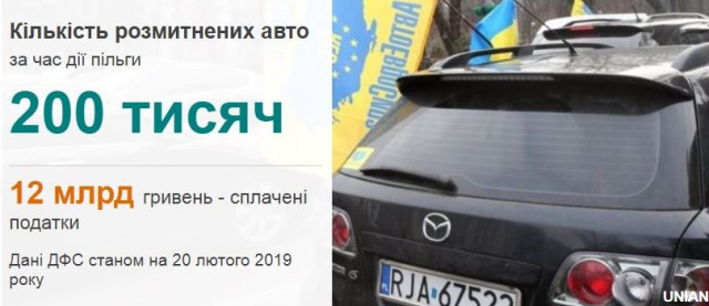 Станом же на 19 лютого українці розмитнили 200 тисяч автомобілів на іноземній реєстрації, а до бюджету сплатили понад 12 мільярдів гривень.Проте є один важливий нюанс – з цієї кількості розмитнених авто тільки 123 тисячі перебували в Україні на момент схвалення закону, який запустив процес. Інші – це ті авто, які додатково завезли в останні кілька місяців з розрахунку на пільгу.