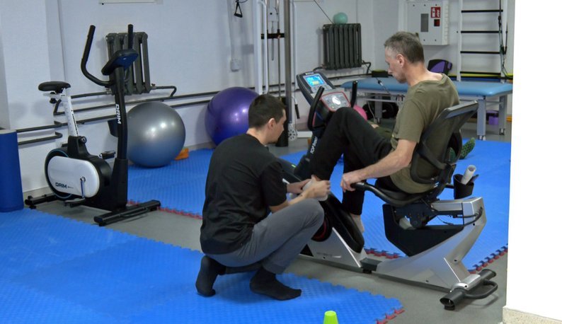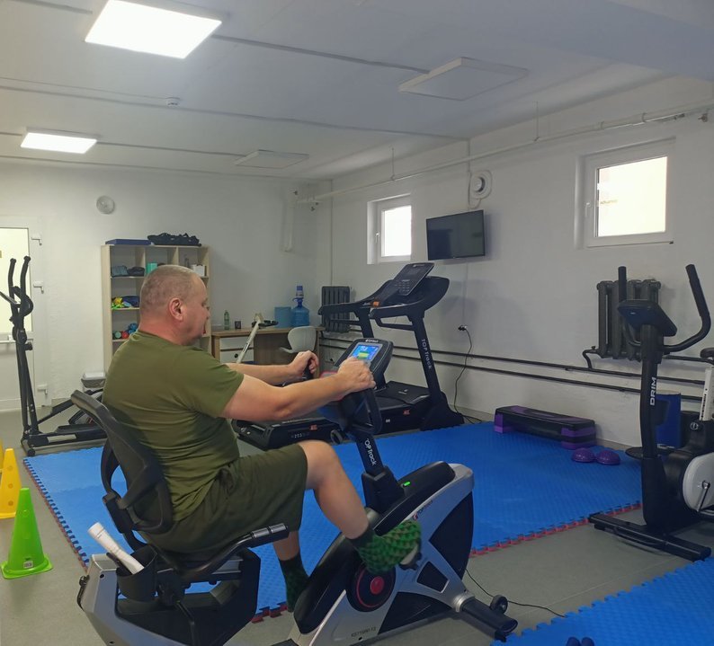 Другий курс реабілітації в медичному центрі отримує 56-річний ветеран війни Олександр. Зараз чоловік займається у залі кінезотерапії.