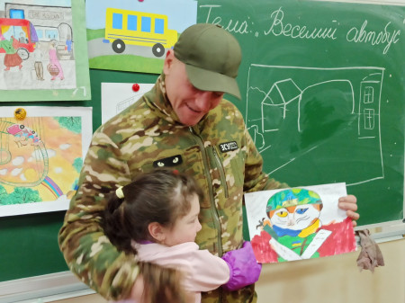 Поспілкуватися з дітьми та забрати малюнок-оберіг військовий приїхав до Центру сам.