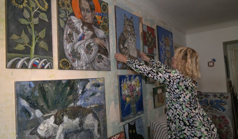 «Коти – це дуже серйозно. Є картина з трьома котами. Мій кум воює, і в окопі на передовій народила кішка. Стріляли, було місиво, кум прийняв пологи. Тому хочу порівняти історії з фронту, коли і військові, і цивільні рятують тварин, ризикуючи життям», – каже Наталія Мелесь і додає, що хотіла б, щоб у Луцьку люди більше турбувалися про котів, які живуть на вулиці.Читати ще: У центрі Ковеля з'явиться мурал Лесі Українки