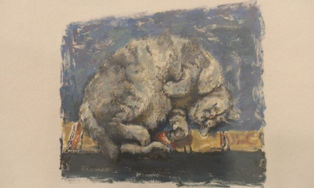 «Це – збірний образ кота, який живе своїм чудовим життям, інколи бавиться, спостерігає», – говорить художник.Зі слів Наталії Мелесь, виставка діятиме упродовж двох тижнів у малій залі Галереї мистецтв обласного осередку національної спілки художників України.