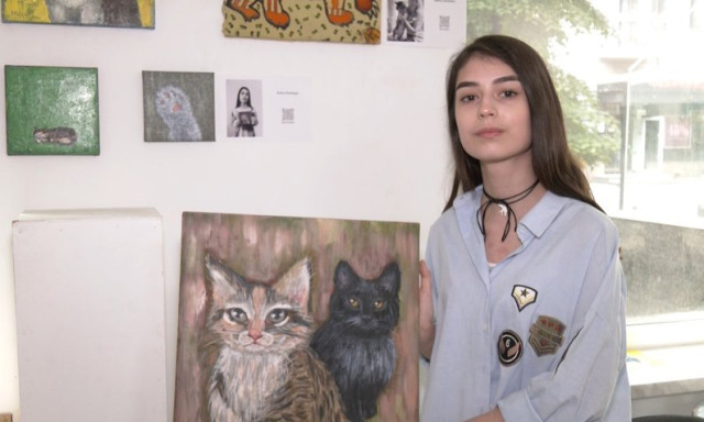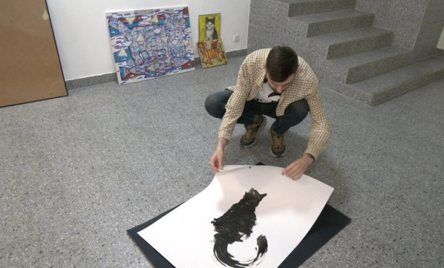 «Захотілось до дня захисту котів намалювати їх, щоб вони можливо принесли людям щастя, спокій. Кота, якщо побачу, можу погладити, купити корм і погодувати», – ділиться Аліса Каліщук.Один із авторів виставки, Олександр Наумюк розповів: образ кота створив, не використовуючи пензлик. Це образ збірний, бо кота художник теж немає.