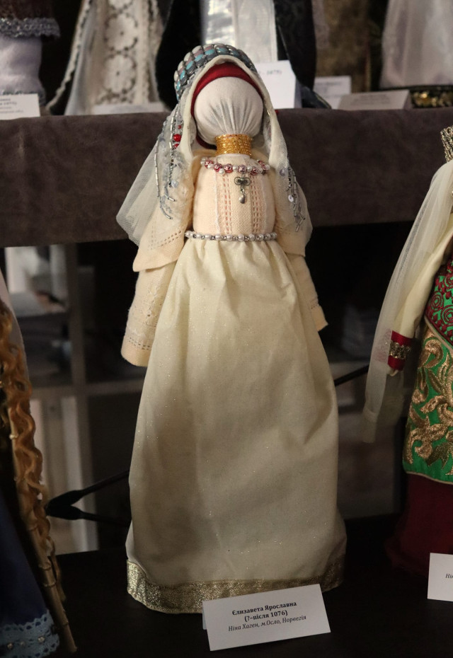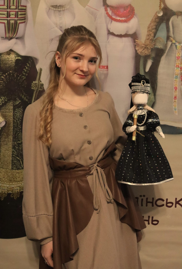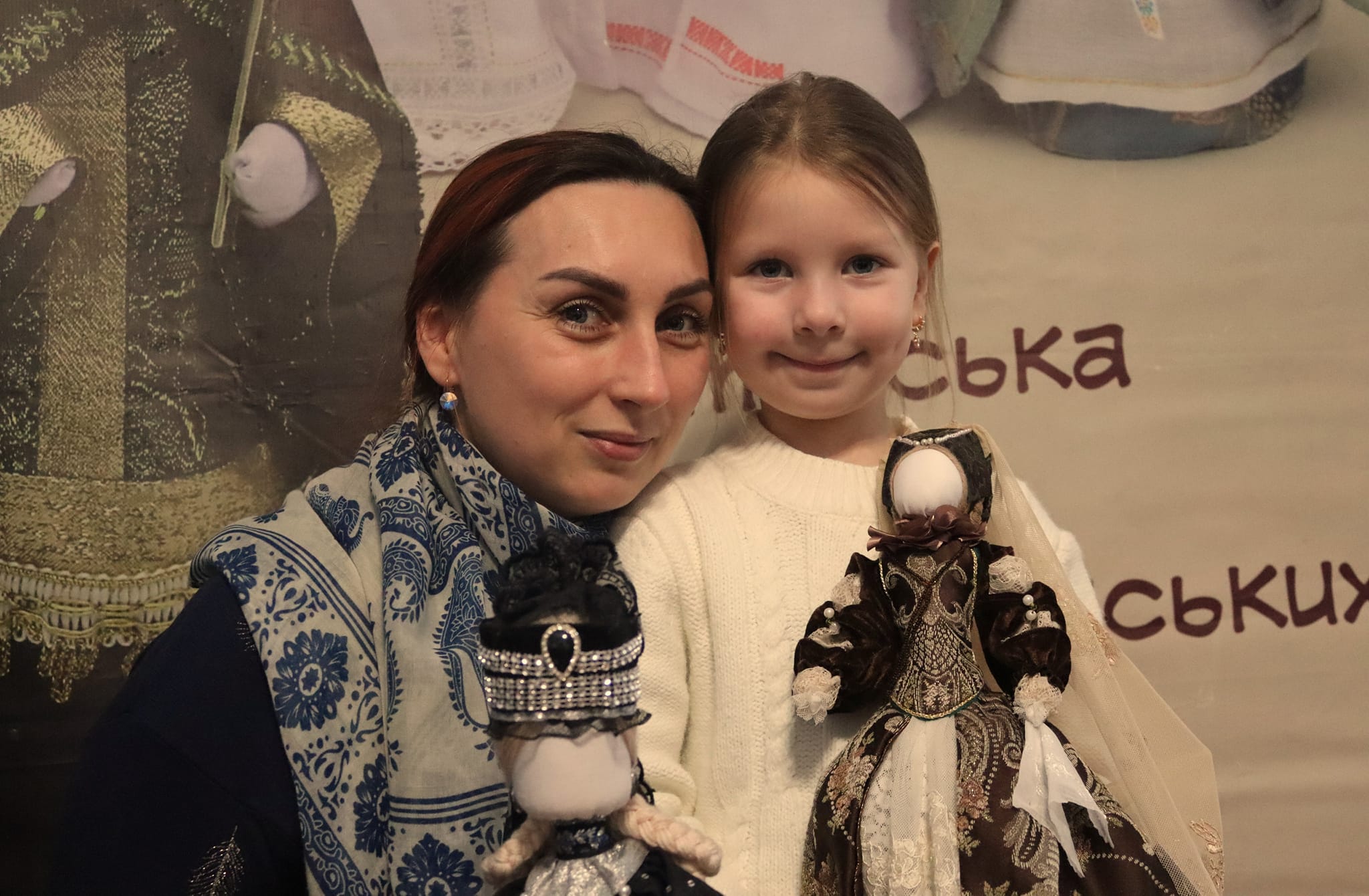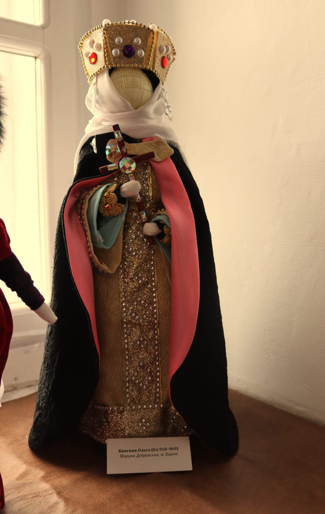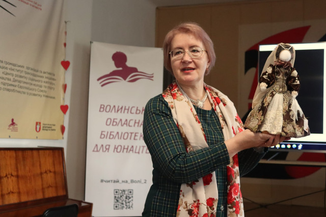 Розповіла про історію виникнення ляльки, її види, традиції творення, різницю між мотанкою та вузловою лялькою луцька майстриня-лялькарка Олена Михальчук, чиї роботи теж представлені в експозиції.Варто зазначити, що на виставці зараз загалом 79 вузлових ляльок, що вбрані у княжі строї часів Київської Русі. Вони виконані не як історичні копії, а як стилізовані образи, засновані на власних дослідженнях українських майстринь-лялькарок.Присутнім волонтерам, студентам та викладачам Технічного фахового коледжу ЛНТУ і ЛЦПТО та іншим гостям було дуже цікаво дізнатись історію кожної княгині та князівни, які зараз перебувають у книгозбірні.Читати ще: Волинський майстер виготовив ляльку-мотанку з гусячих яєць