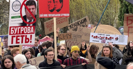 У столиці студенти КНУ імені Шевченка мітингують проти ректора Володимира Бугрова. Протести почалися після інтимного відео в мережі, на якому зображений чоловік, схожий на Бугрова.