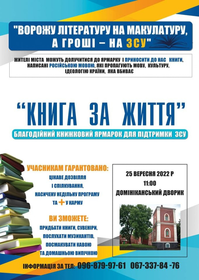 «Книга за життя»: у Володимирі відбудеться благодійний книжковий ярмарок на підтримку ЗСУ