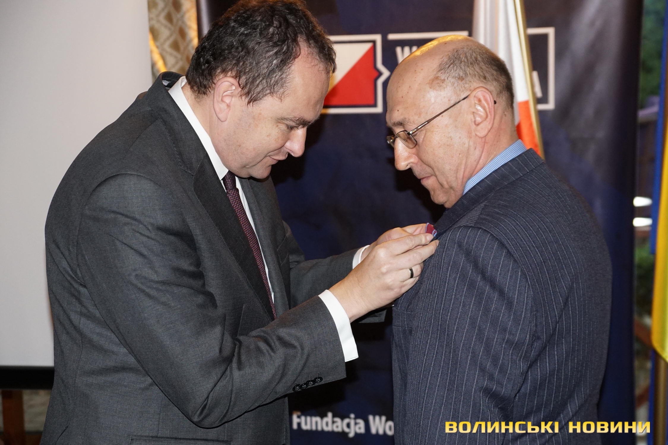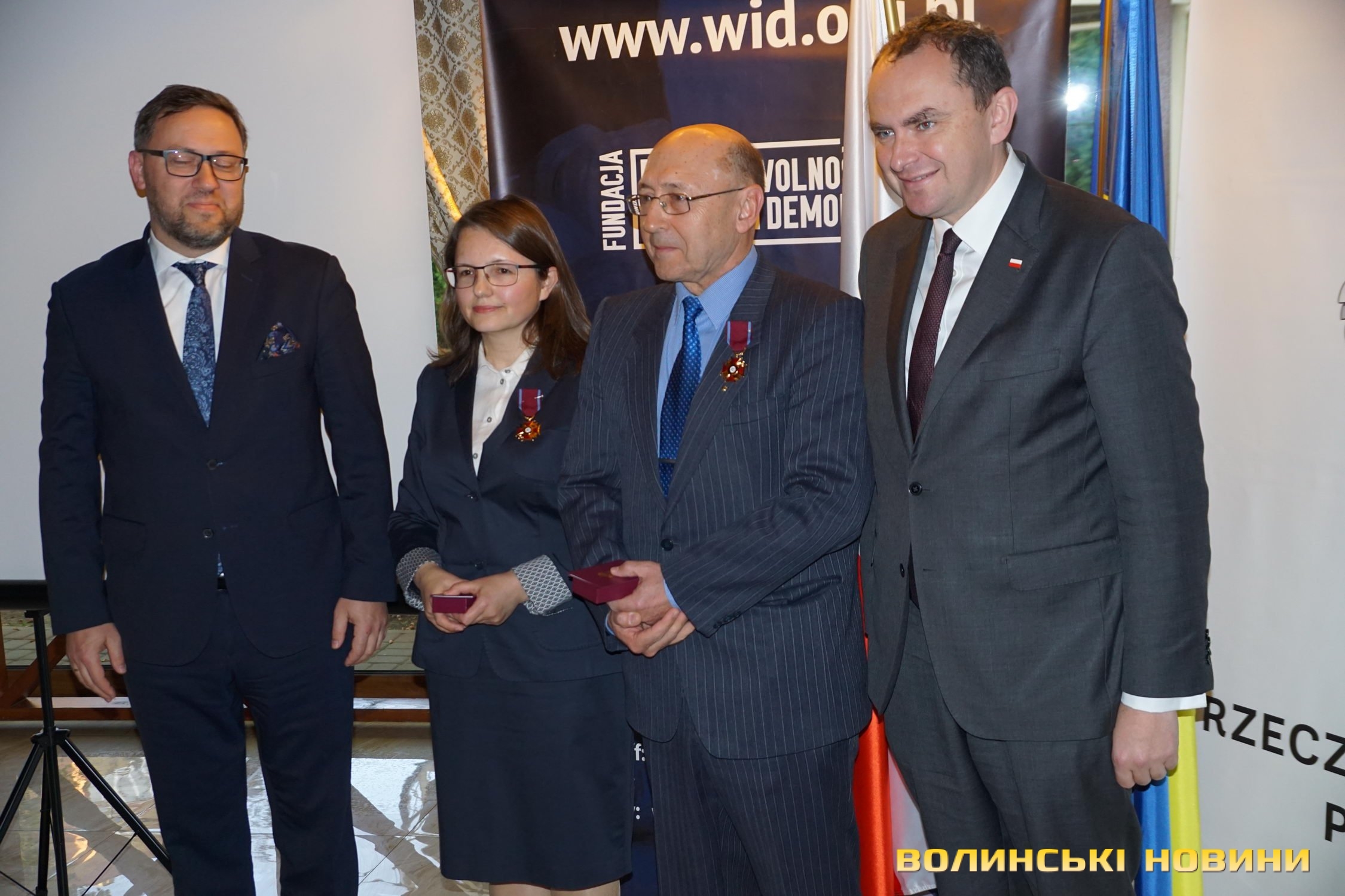 Після презентації діяльності ювіляра медалі від президента Республіки Польща Анджея Дуди за значний внесок у популяризацію польської культури за кордоном, розвиток польсько-українського діалогу та з нагоди 10-річчя «Волинського монітора» отримали головний редактор газети Валентин Ваколюк і заступниця головного редактора Наталія Денисюк.Вітання від Анджея Дуди передав міністр із Канцелярії президента РП Адам Квятковський, котрий, зокрема, наголосив, що «Волинський монітор» навколо правди гуртує не тільки поляків, а й українців.На захід, аби привітати колектив двотижневика, прибув і виконувач повноважень Луцького міського голови Григорій Пустовіт. Він наголосив, що розвиток добросусідських відносин між Україною та Польщею можна простежити вже за тим, що представники української та польської влади разом вшановують у Костюхнівці чи Мельниках польських героїв, які загинули, захищаючи свою Батьківщину.