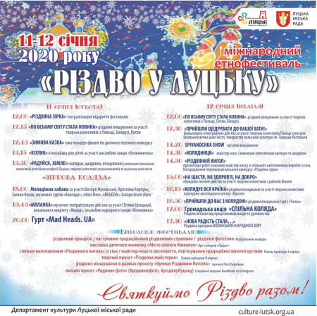 11-12 січня на Театральному майдані міста Луцька відбудеться етнофестиваль «Різдво у Луцьку», інформує Луцька міська рада.