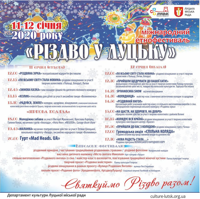 На гостей свята очікують виступи творчих колективів на Театральному майдані міста Луцька, а також громадська акція «Спільна Коляда».