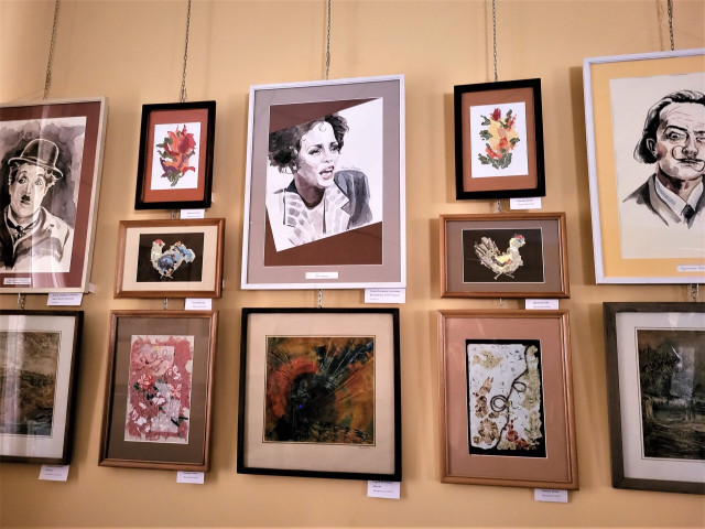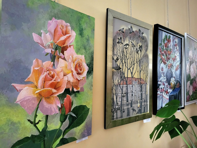 Експозиція видалась багатою на різні техніки виконання: олійний та акриловий живопис, гарячий батик, лінорит, акварель, черпаний папір, а також представлено авторську роботу від Сергія Ничипорука.