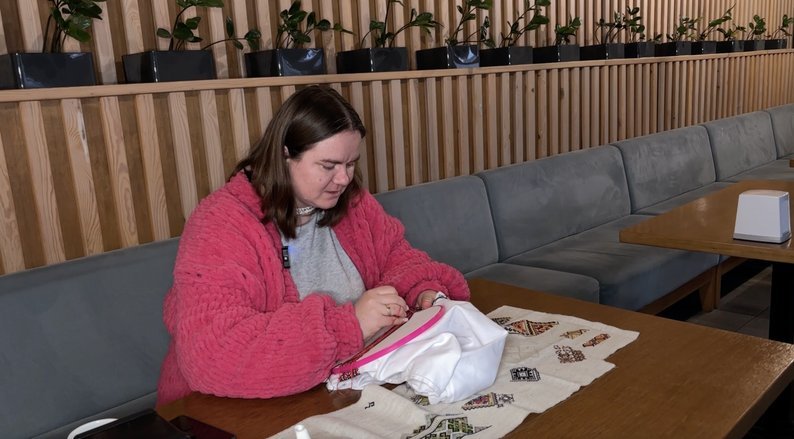 Як розповіла Суспільному волинянка, саме вишивання допомагає їй заспокоїтися. Жінка додає: коли працюють руки, перемикається мозок. Водночас рукоділля дозволяє зберігати українські традиції.