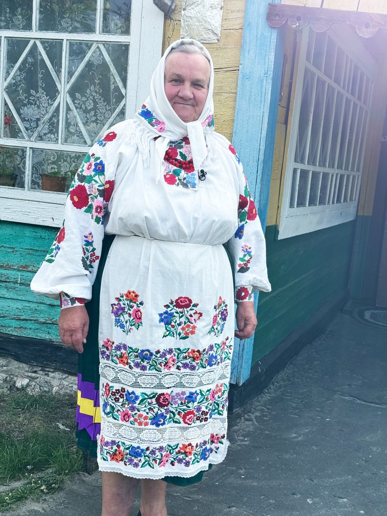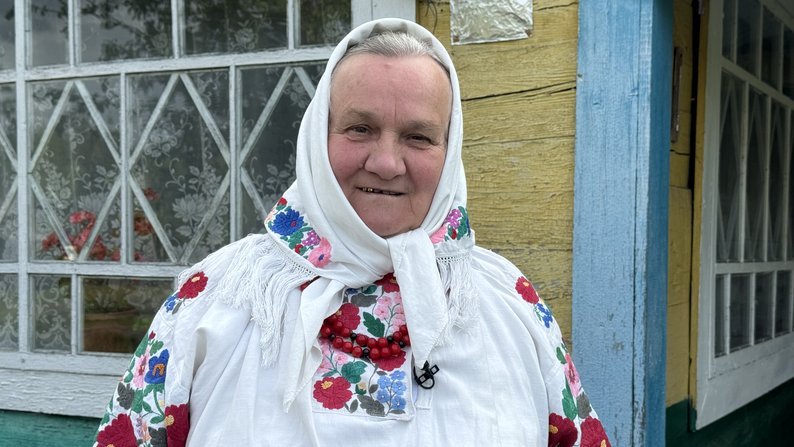 67-річна жителька села Лобна Любешівської громади на Волині Ніна Поліщук отримала у спадок від своєї мами вишиванку, фартух та хустку. Вишиваному костюму – 70 років.