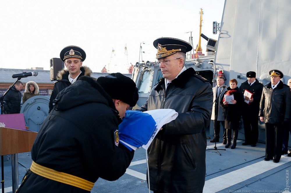 Як повідомляє одеське видання “Думська”, де тепер базується український флот, Бреєв брав участь в церемонії підняття прапора на кораблі, яка відбулася 27 грудня на суднобудівному заводі “Янтар” в Калінінграді і цілував російський триколор.