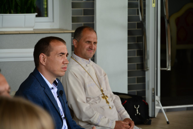 Захід розпочався із виступу настоятеля церкви святих мучениць Віри, Надії, Любові і їх матері Софії отця Євгена Рябця. Ігор Пальонка 20 років є прихожанином цього храму і з отцем Євгеном вони разом будували його.