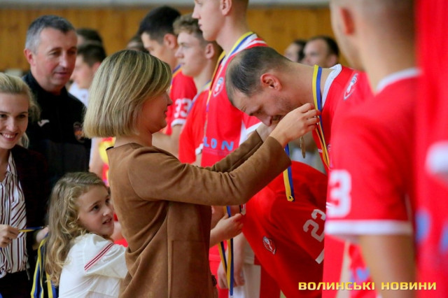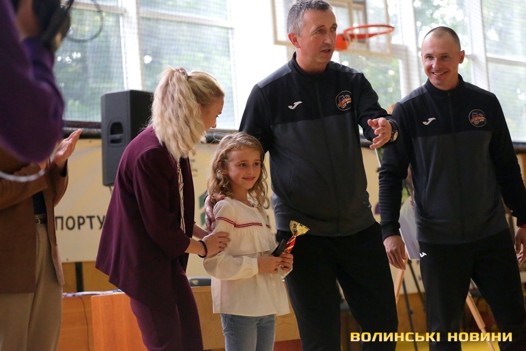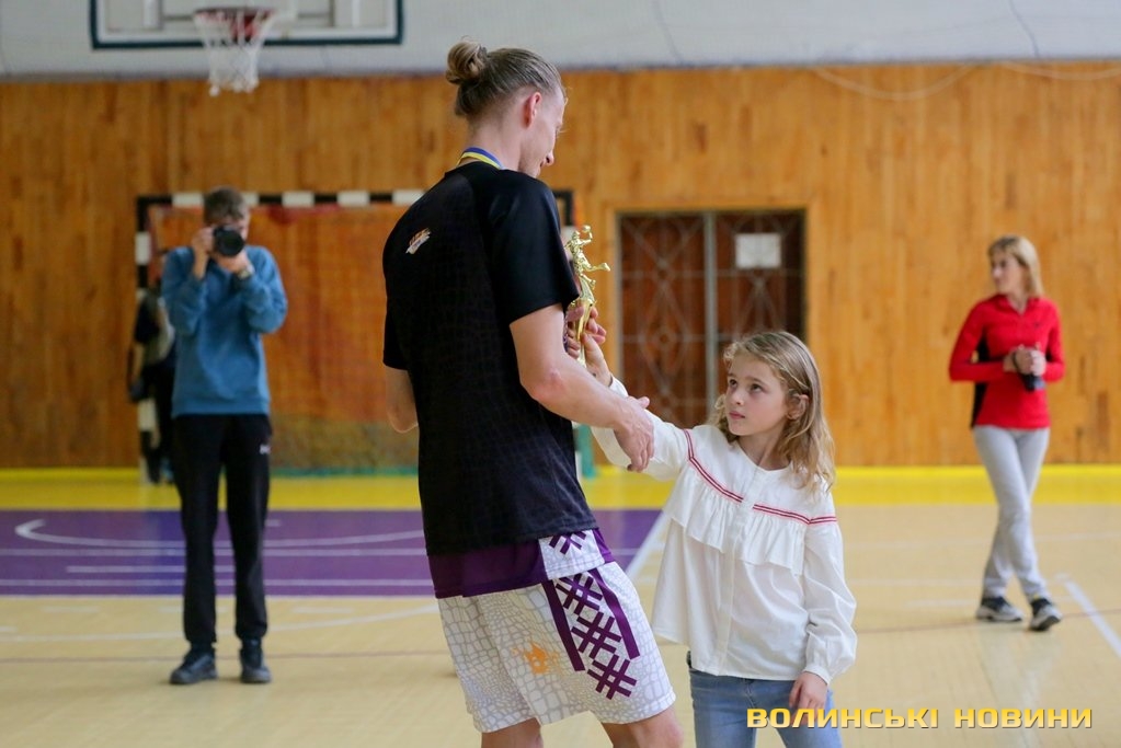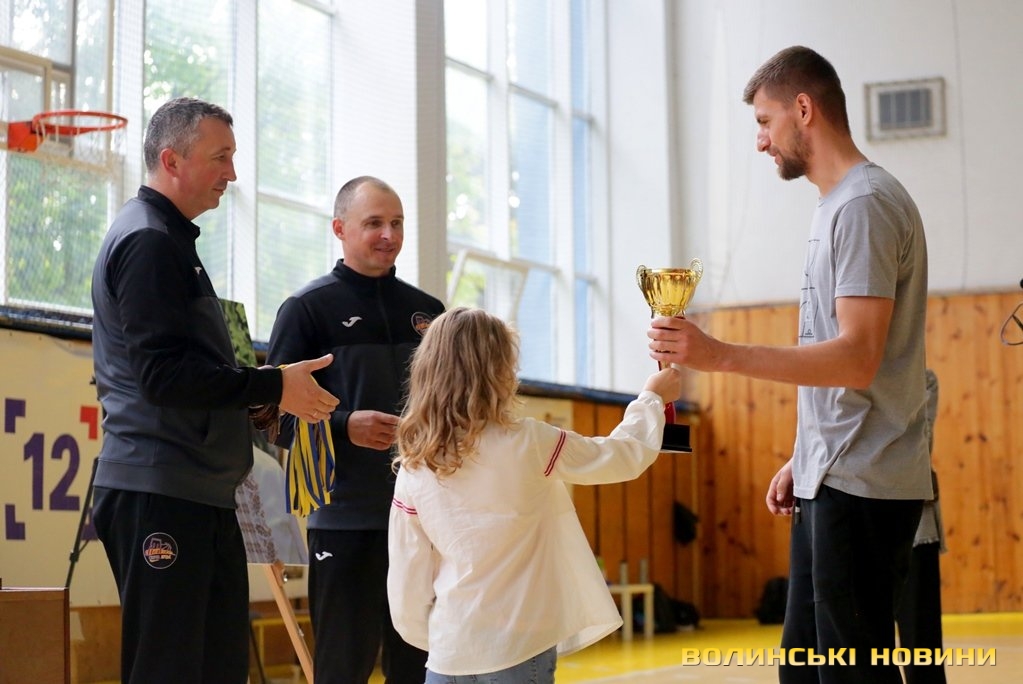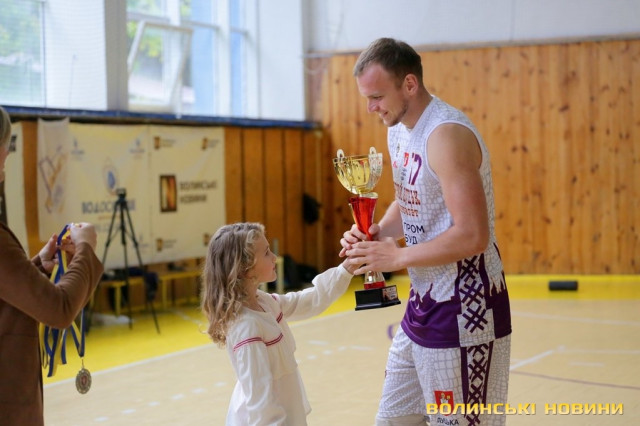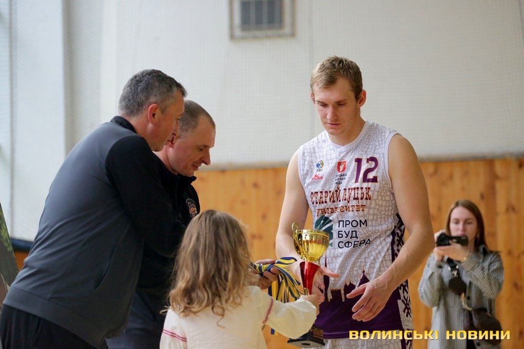 «Ви гордість нашого міста. Ми з чоловіком отримували масу задоволення від ваших ігор», – зауважила Анна Веремійчик.А потому Аліса Веремійчик вручила кубки переможцям турніру. Третє місце посів «Новомосковськ», срібні медалі завоював БК «Рівне», а золото – «Старий Луцьк – Університет-2».Щодо індивідуальних нагород, то найкращим центровим став Сергій Юрченко, Євген Коровяков з БК «Рівне» став найкращим нападником, а найкращим захисником став Юрій Крамар. MVP турніру організатори обрали Володимира Коцька.Ну а супер-MVP турніру стала маленька Аліса Веремійчик.