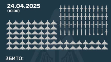 В ніч на 24 квітня Росія випустила по Україні 215 ракет різного типу та дронів, основний удар прийшовся по Києву, ППО збила 112 ворожих повітряних цілей, активну участь у відбитті атаки противника брали винищувачі F-16 та Mirage.
