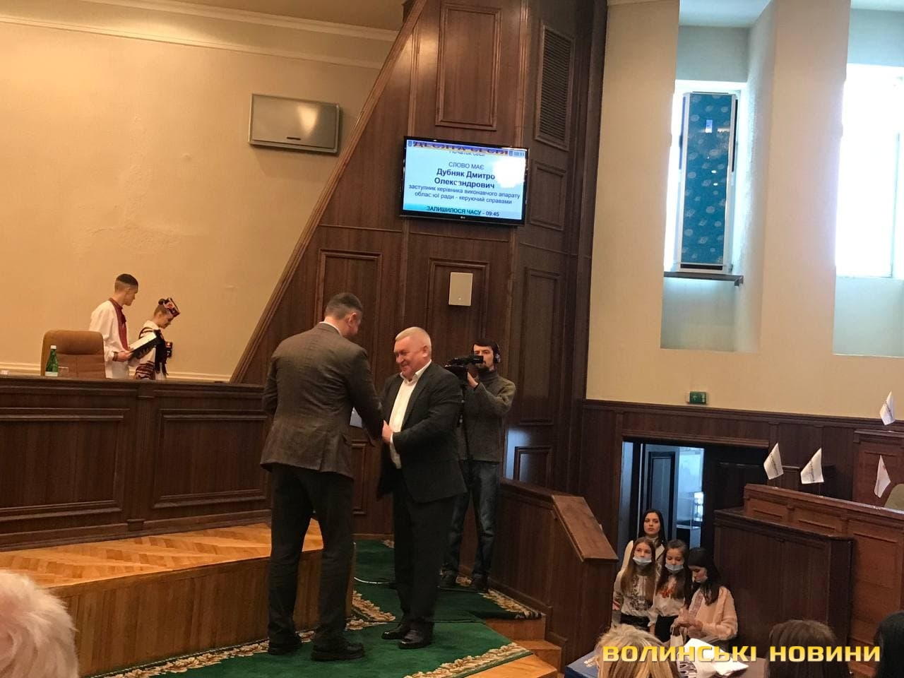 "Я дожив до цього часу, а міг би не дожити. У мене в житті все було, але щоб розповісти, потрібно зачитати цілу книжку. Я бажаю усім миру і щоб Україна розквітала. Більше мені нічого не треба. Хіба дожити до 100 років«.Окрім цього почесними грамотами обласної ради та подяками від народної депутатки України Ірини Костанкевич з нагоди дня місцевого самоврядування нагородили працівників виконавчого апарату Волинської обласної ради.