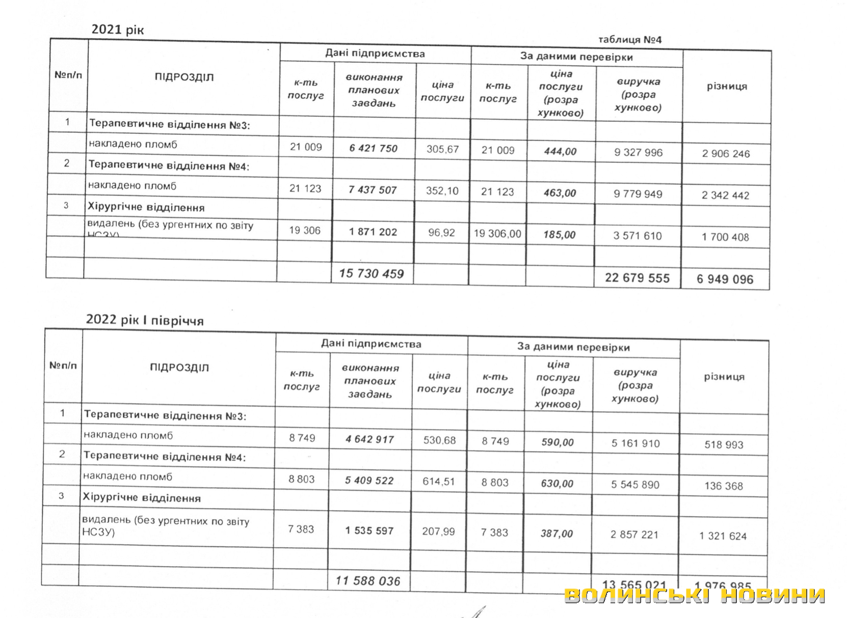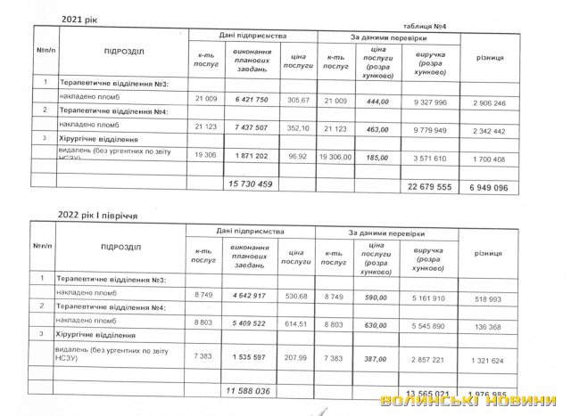 Інформаційне агентство Волинські Новини отримало копію результатів перевірки, яку провели спеціалісти департаменту фінансів, бюджету та аудиту Луцької міськради. Вона охопила фінансово-господарську діяльність міської стоматологічної поліклініки за 2021 рік та перше півріччя 2022 року і в ній виявили низку порушень, про які ми розповімо детальніше.Відзначимо, що у структурі стоматполіклініки функціонують рентгенологічний, фізіотерапевтичний кабінети, два ортопедичних, одне хірургічне і три терапевтичні відділення (одне з них фінансується за рахунок бюджету Луцької громади та створене для надання послуг пільговим категоріям населення).