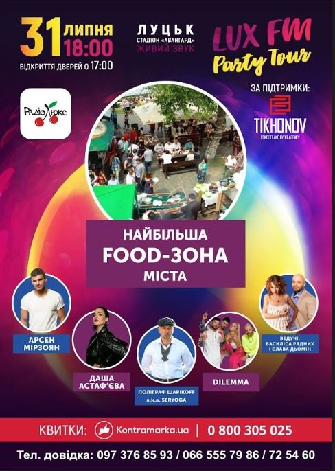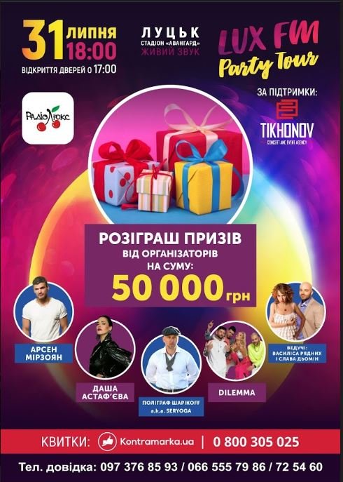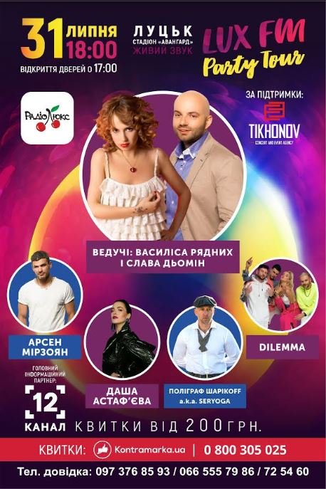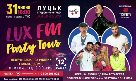 Великий концерт «LUX FM Party Tour», який триватиме понад 5 годин, відбудеться 31 липня на стадіоні Авангард в Луцьку.