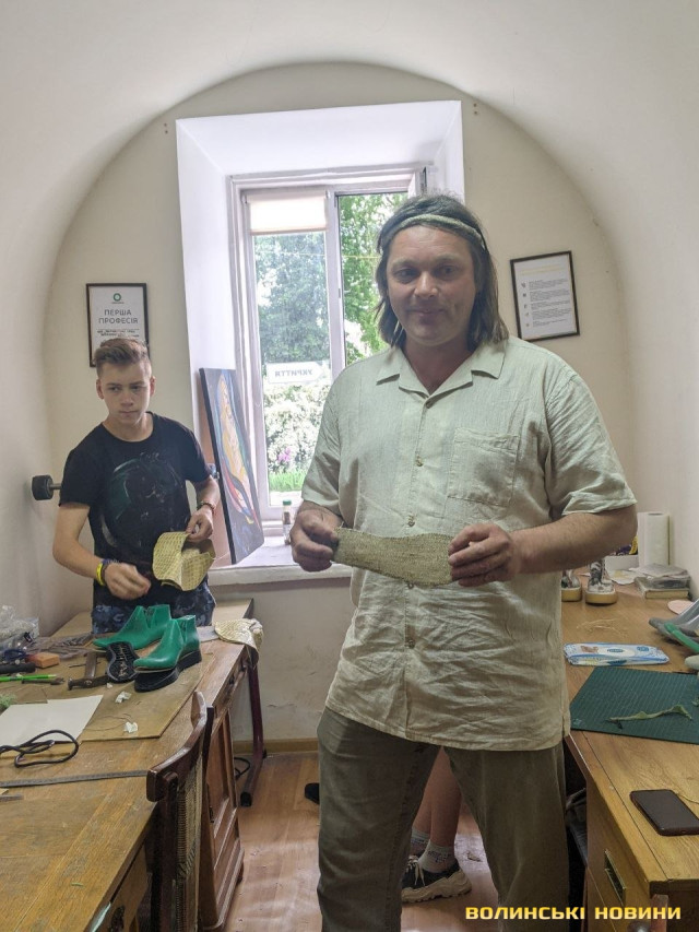 «Ми тут виготовляємо конопляні устілки для військових, – розповідає вчитель трудового навчання Олег Земнухов. – Вони складаються з трьох шарів. Перший шар, нижній, як основа, – з мішковини або брезенту, далі йдуть два шари конопель – всередині товстий, він забезпечує масажний ефект, і зверху тонша тканина. Окрім того, всередину ще засипаємо полин як антисептик. Конопляне волокно має здатність поглинати вологу, а завдяки трубчатій структурі воно пропускає повітря. Тому нога у взутті з такими устілками не пітніє. Вони, як термос, зберігають температуру тіла».Біодизайнер за фахом, Олег Земнухов розповідає, що цікавиться коноплею та виробами з неї вже не один десяток років. За радянських часів у його родині вирощували цю рослину і здавали в колгосп. Потім про коноплю незаслужено забули.