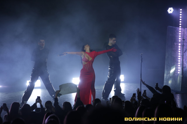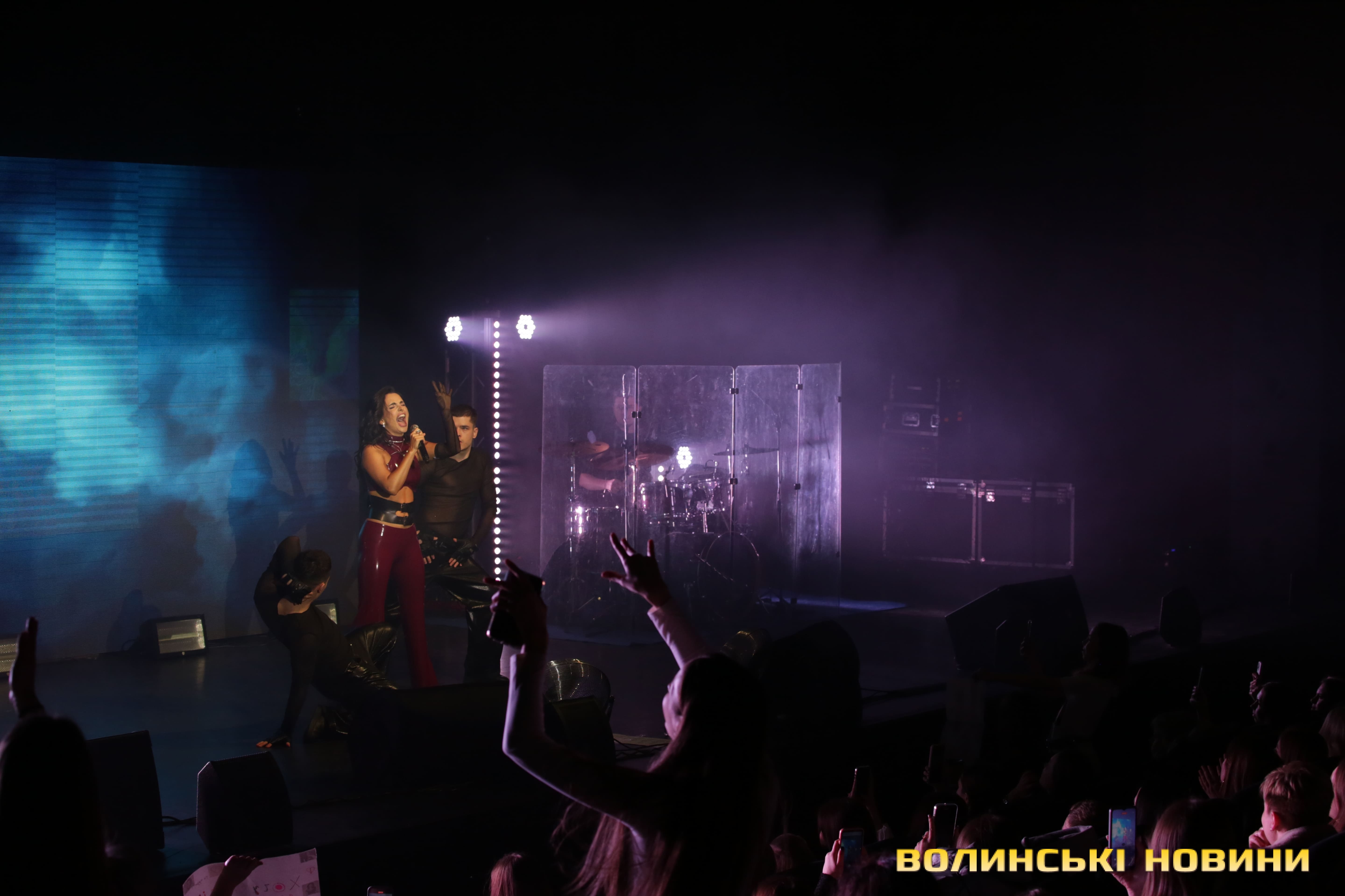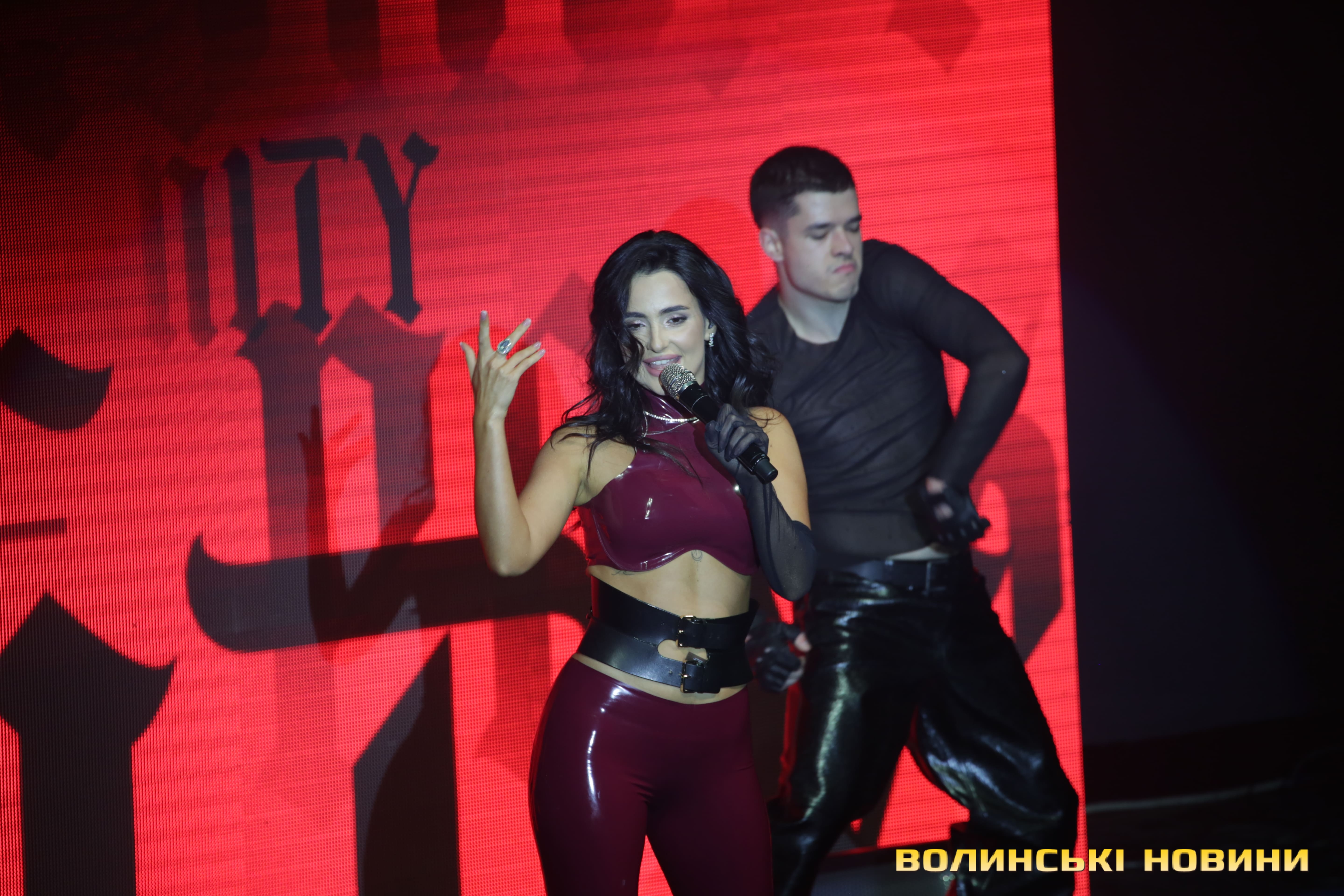 Виконавиця подарувала лучанам і танцювальні хіти, і балади. Присутні шаленіли під найвідоміші композиції артистки, як-от «Бар за баром», «Колоски», «Очі», «Зі смаком вишні», «По губам» і багато інших.Читати ще: «Я мріяв про вас!» У Луцьку виступив талановитий і запальний YAKTAK. Фото