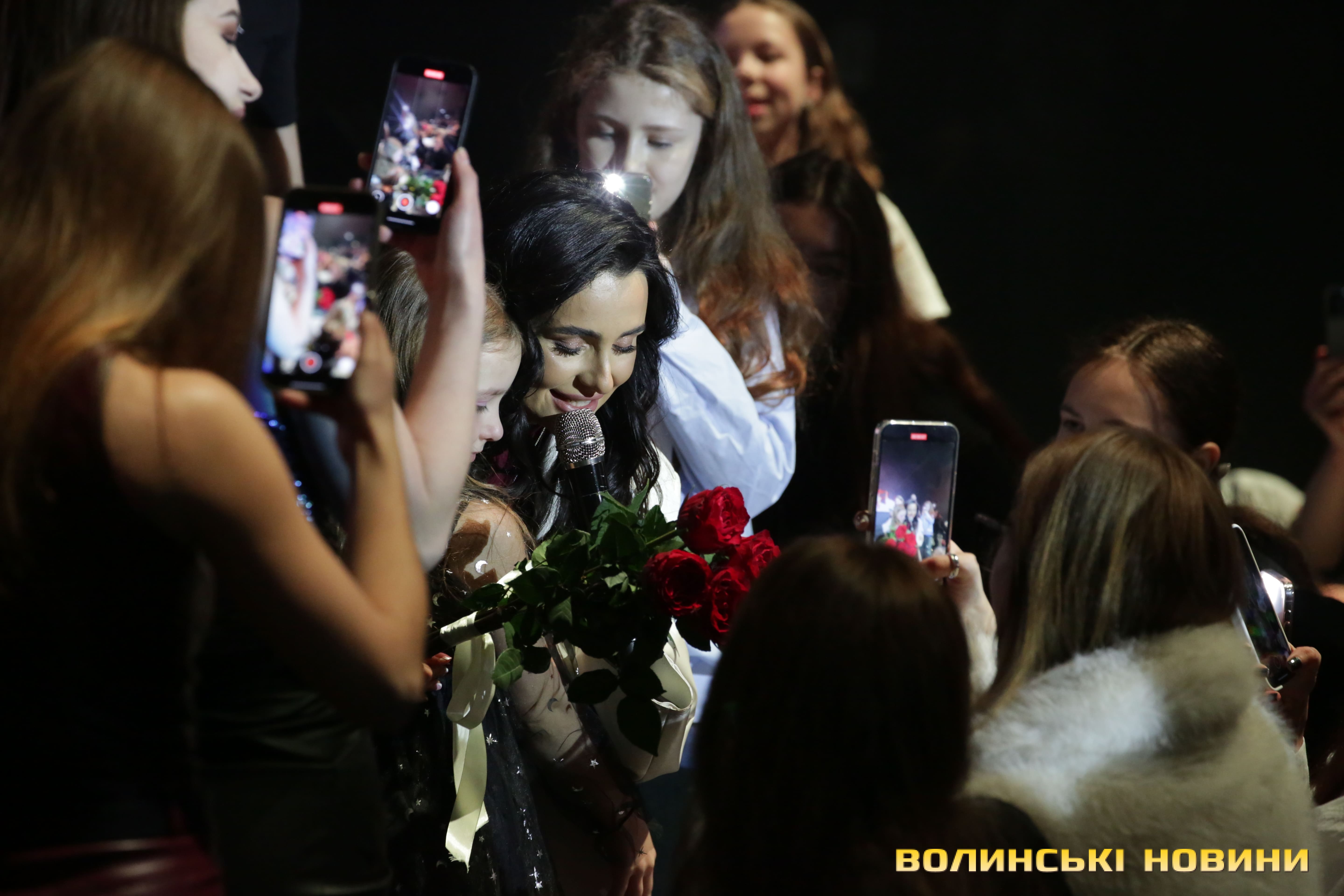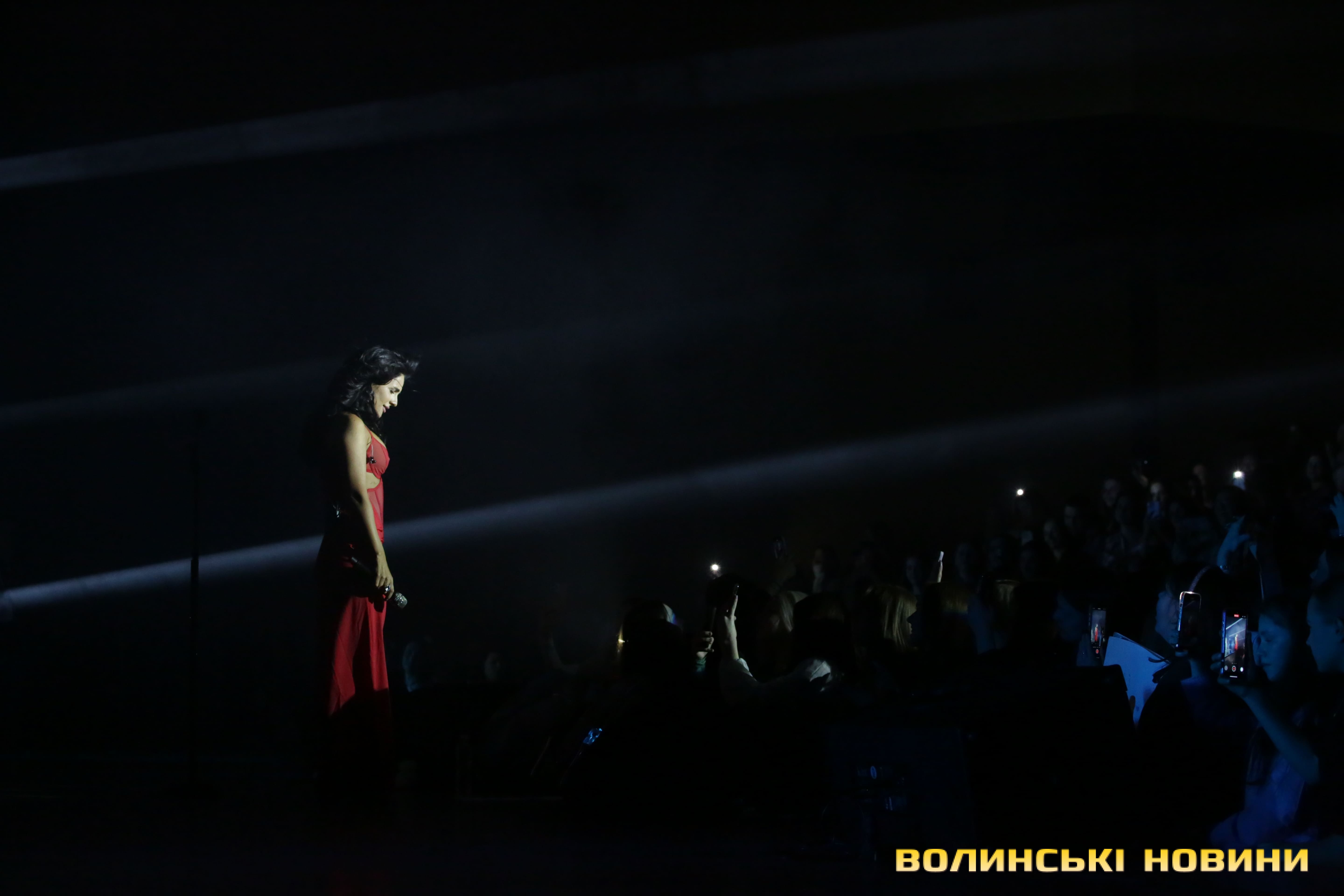 «Боже, як вас багато! Луцьку, в мене сьогодні солдаут! Вау! Я дуже вдячна вам за це. Знаєте, незважаючи на те, що ми з вами особисто не знайомі, що, можливо, ви вперше на моєму концерті, я хочу сказати, що ви – близькі та дуже особливі для мене люди. І це не просто слова. Тому що ми разом із вами переживали моє розлучення, ті часи, коли мені було погано і коли я через біль почала квітнути, коли мої пісні стали для мене і для вас терапією. Нас пов’язують стільки моментів, проведених разом. І цей тур – це моя можливість сказати кожному з вас «дякую». Дякую за те, що ви були поруч зі мною. Дякую, що не давали мені опускати руки. Дякую, що щодня змушували мене усміхатися. Ви – мій великий скарб. І я надзвичайно щаслива людина, тому що маю вас. Дуже вам дякую!