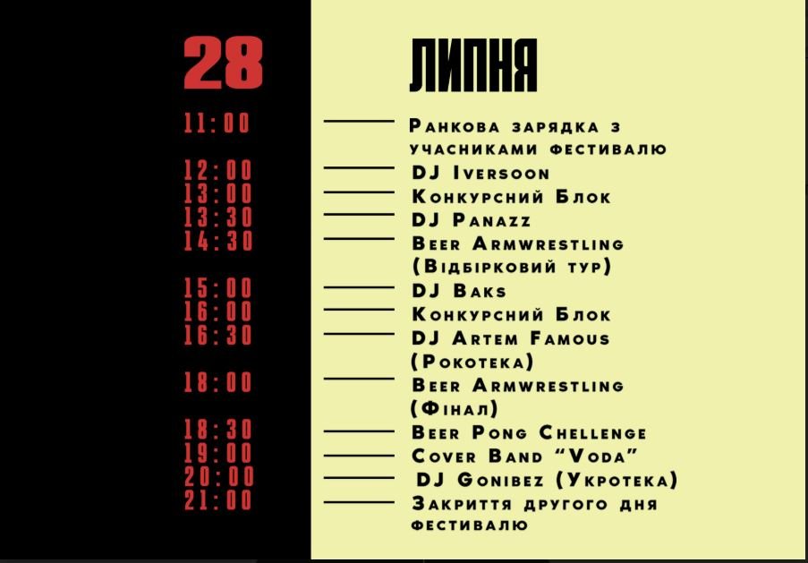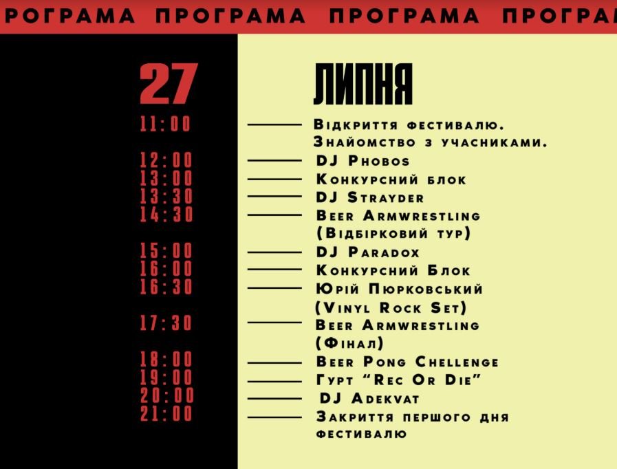 Протягом двох днів заходу на відвідувачів чекає інтенсивна музична та розважальна програма. Зокрема виступатимуть як місцеві гурти, так і запрошені виконавці з інших міст.