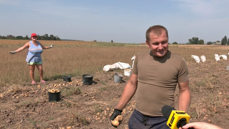 Збирати картоплю на полі допомагає сусідам односельчанин Іван Бугай. Зі слів чоловіка, на власному тракторі заробляє 50 гривень за викопану сотку картоплі.«До трактора чіпляю картоплекопалку, люди просять на яку годину і тоді їду копати. Найбільше зранку роботи, бо в обід зараз спека сильна. Замовлень в мене багато, зранку до ночі копаю. Навіть людям на ніч викопую, а вони зранку ідуть збирають картоплю», – говорить волинянин.