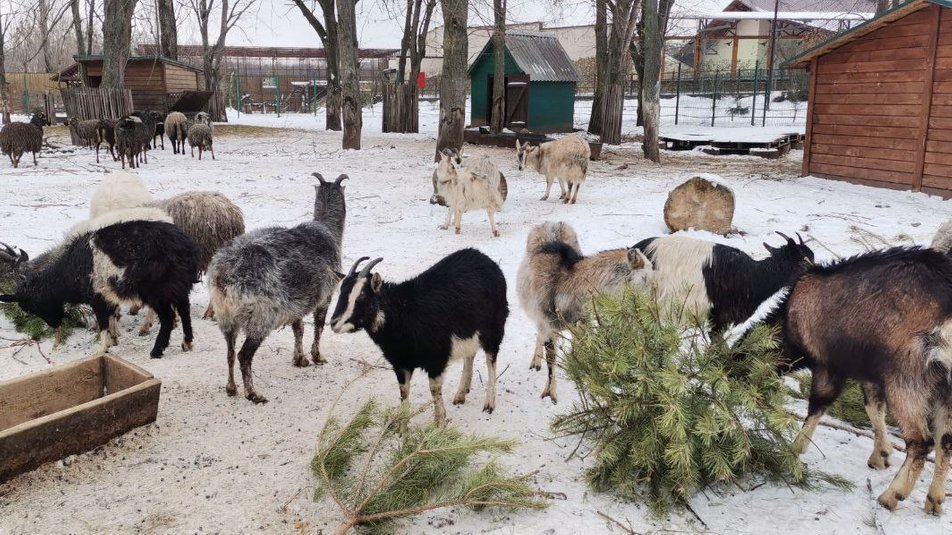 Корм для оленів та розвага для ведмедів: у Луцький зоопарк звозять новорічні ялинки