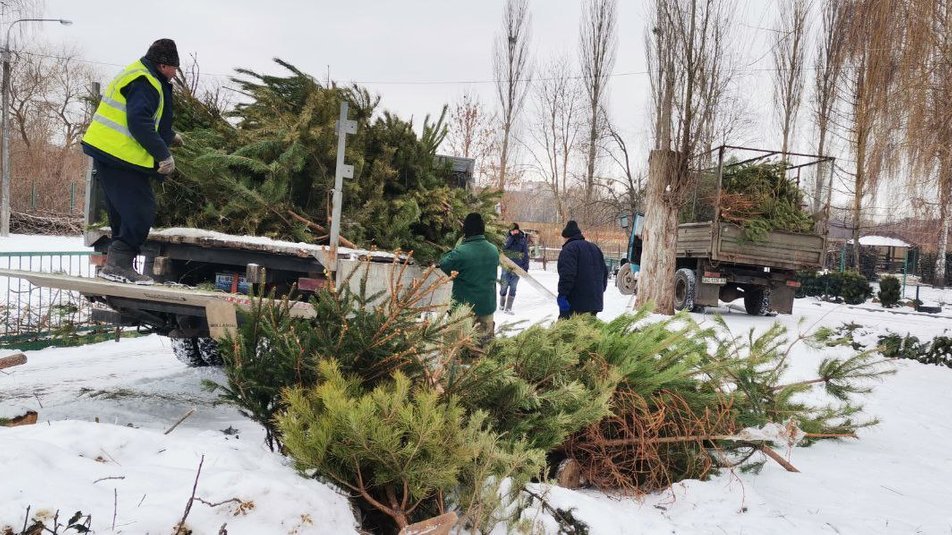 Вчора ялинки та сосни у місті збирали чотири спецавтомобілі.